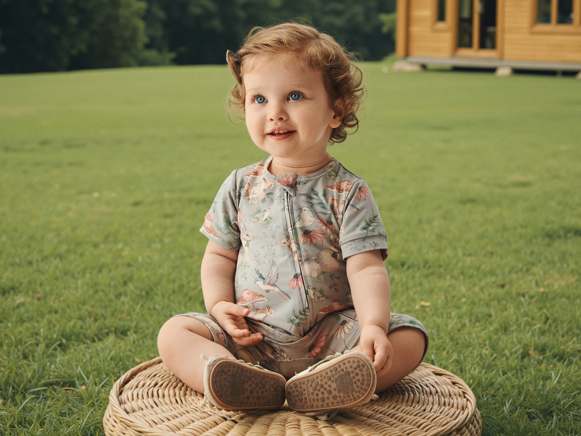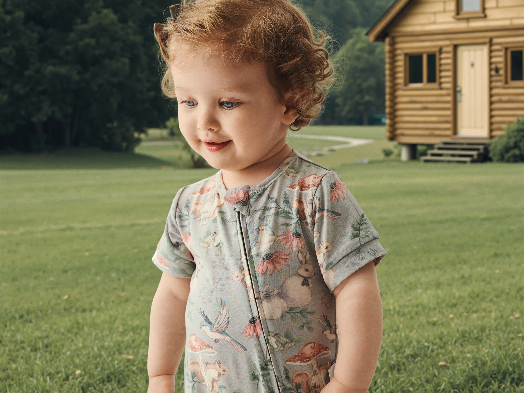 🌸 Soft & Cozy Lenzing Modal Zip-Up Romper for Baby | Nature-Inspired Print | Breathable & Sustainable 🌿