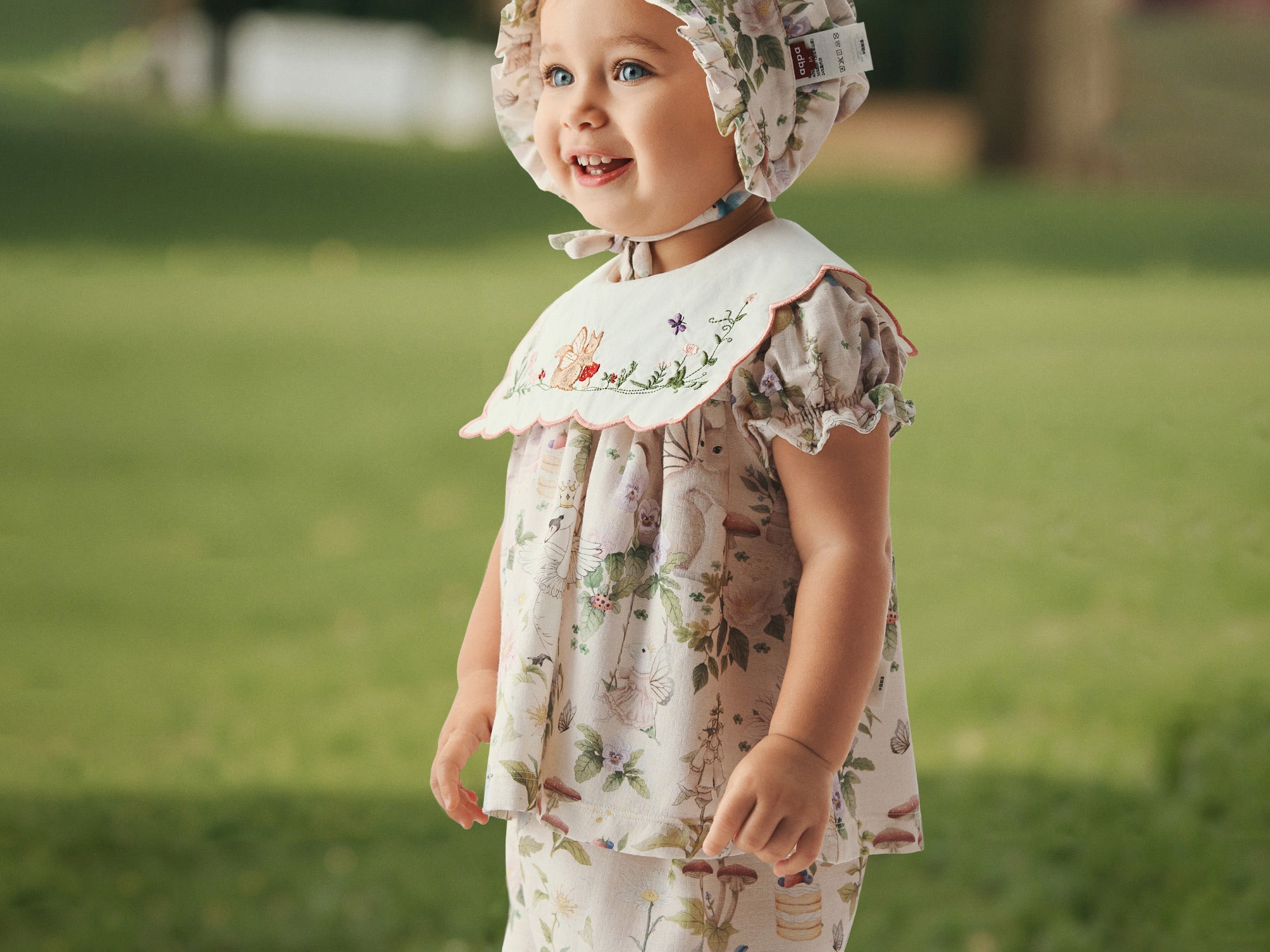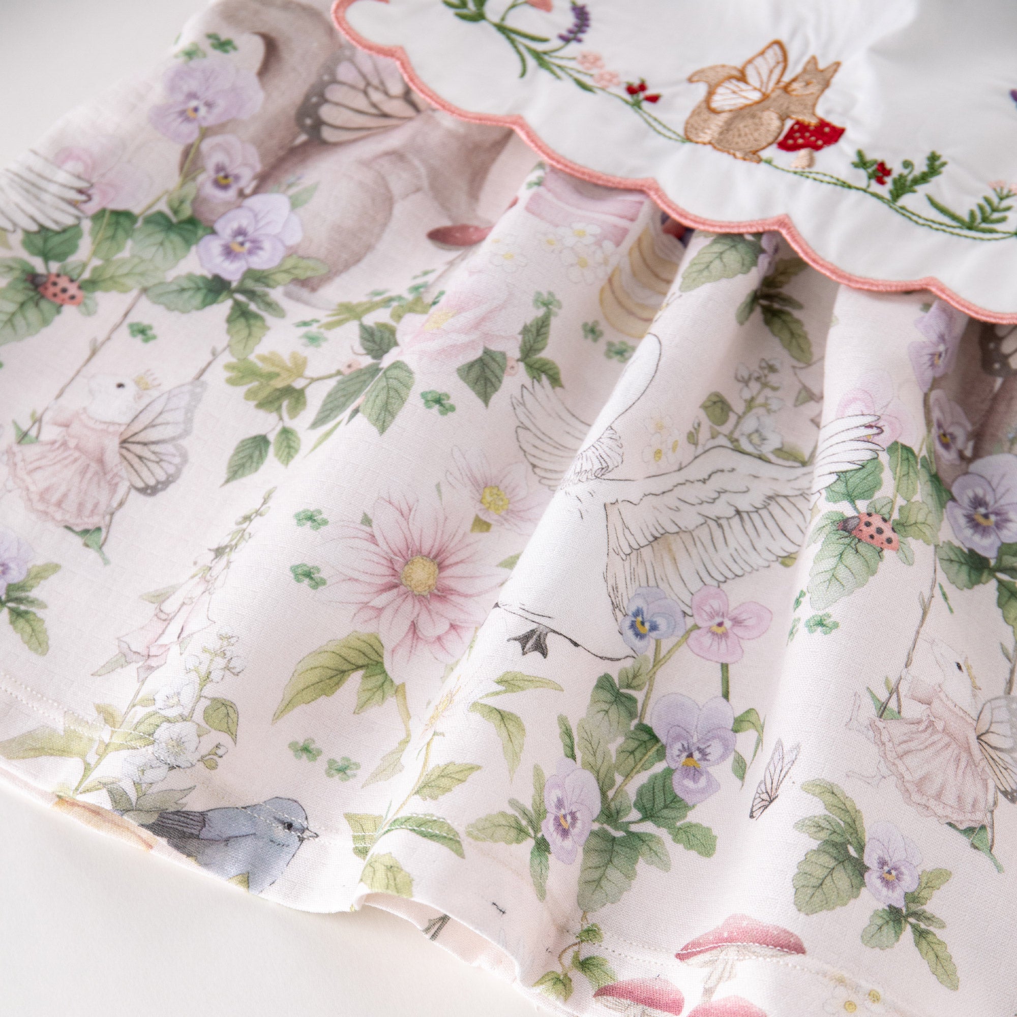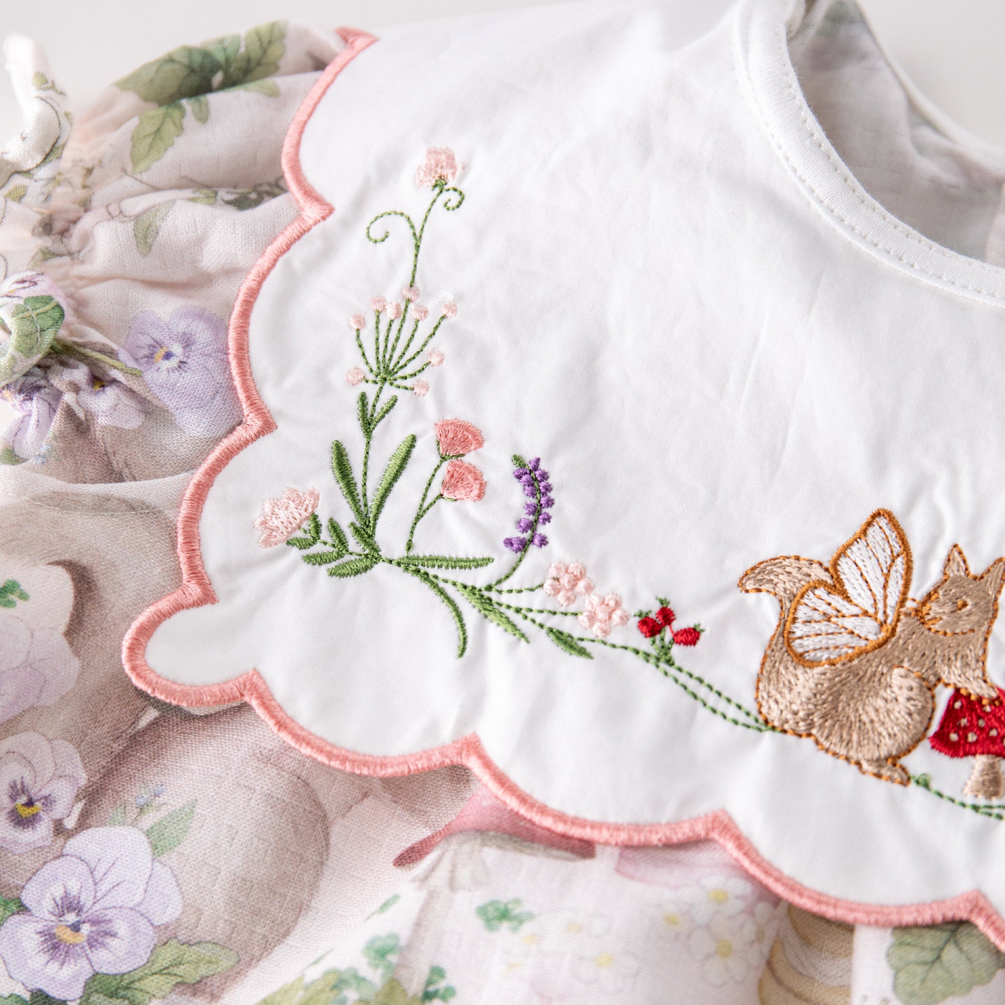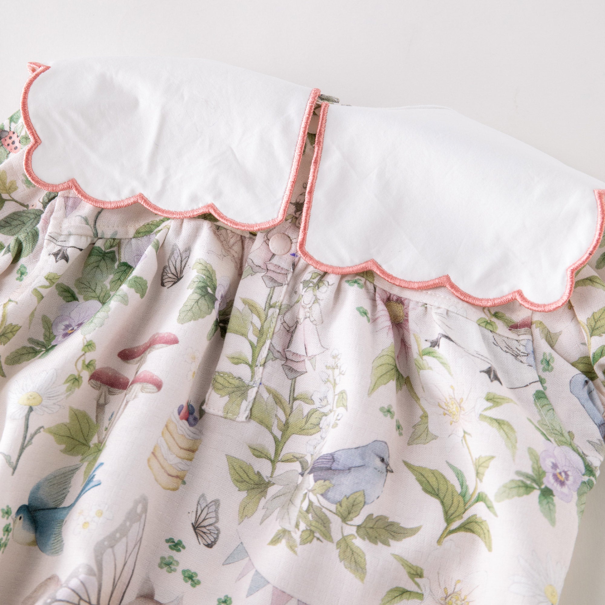 Embroidered Baby Girl Top Fairy Forest Ruffle Blouse with Peter Pan Collar