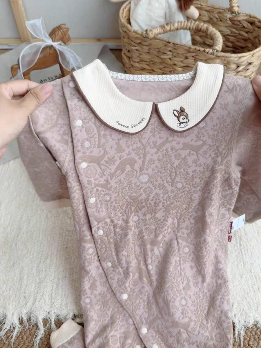 Baby Long Sleeve Jumpsuit – Embossed Jacquard Fabric for a Luxe Look