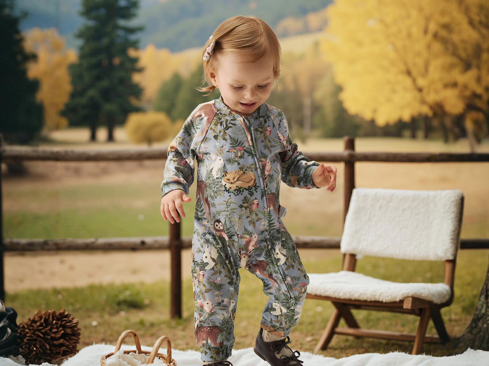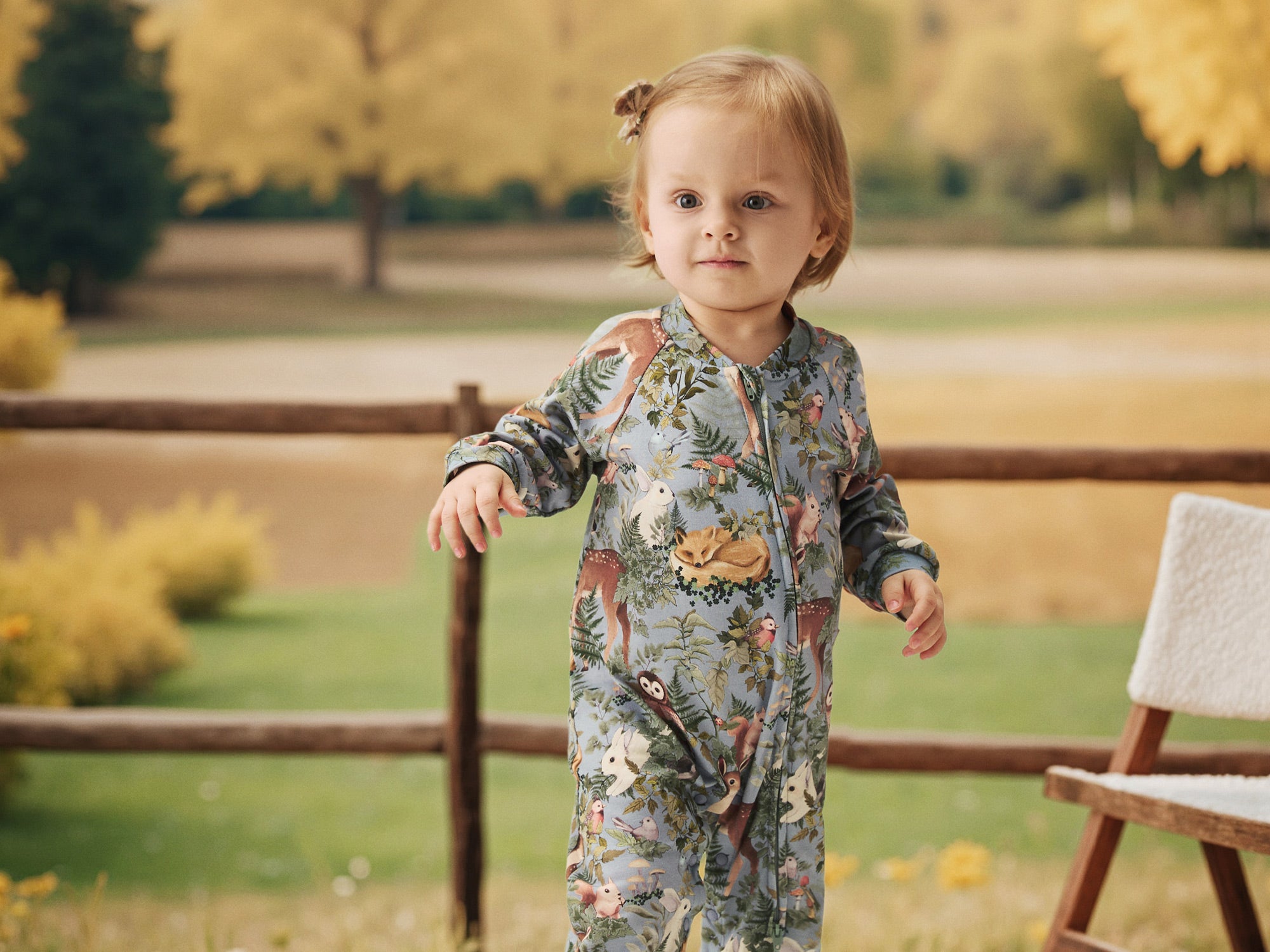 100% Long-Staple Cotton Baby Romper – Woodland Animal Print with YKK Zipper