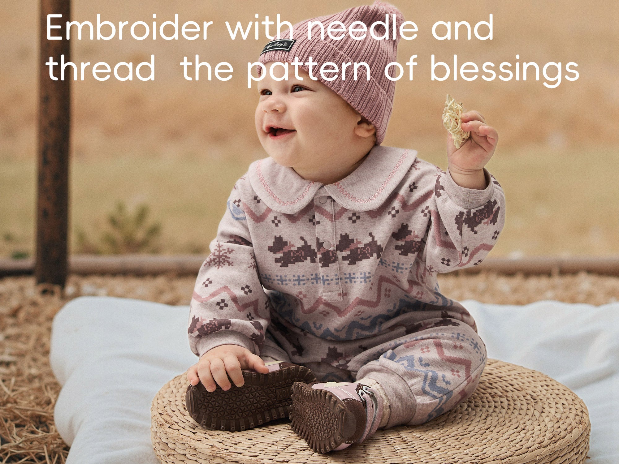 Fair Isle Pattern + Brushed Cotton Finish + Baby Romper