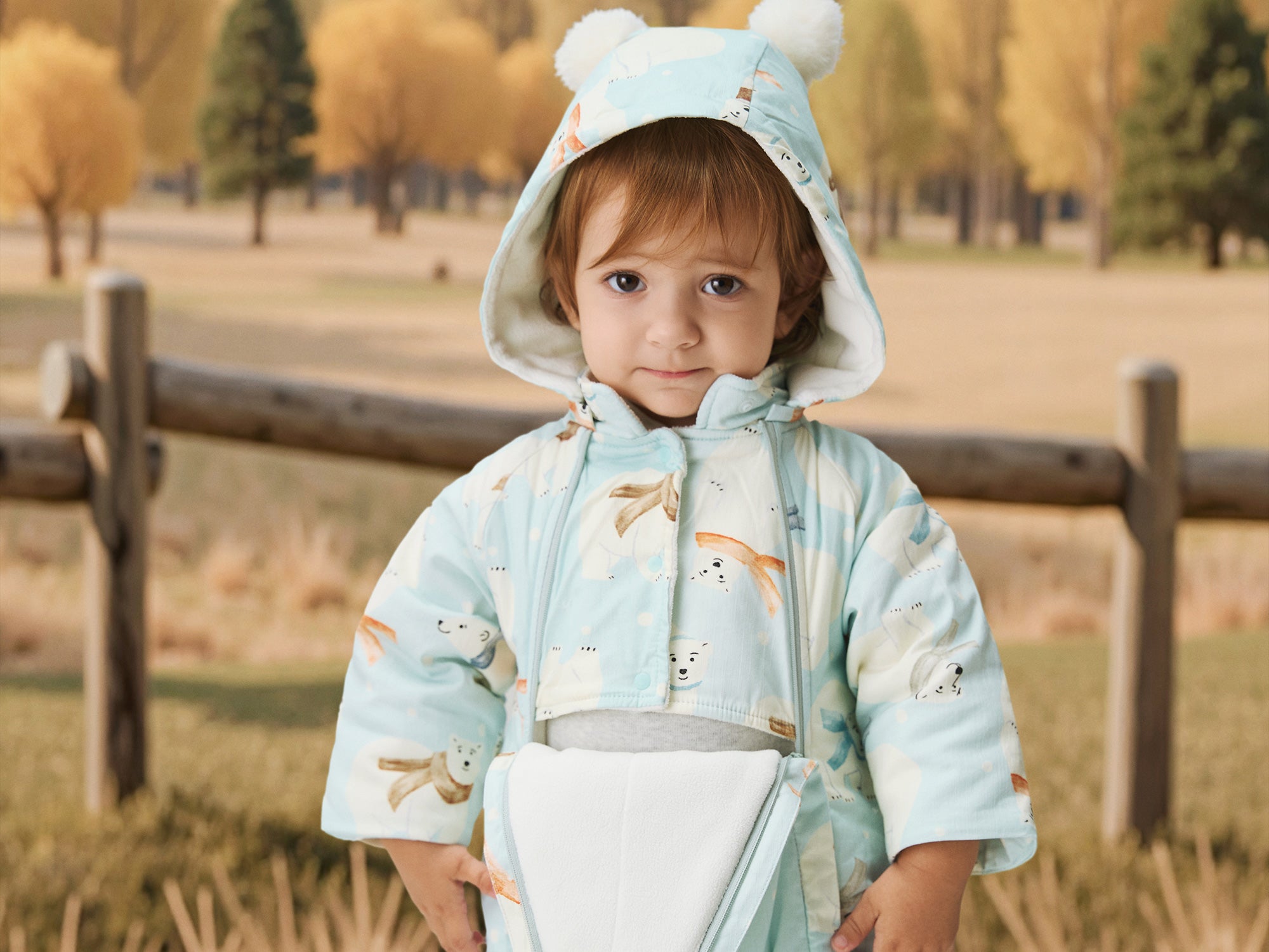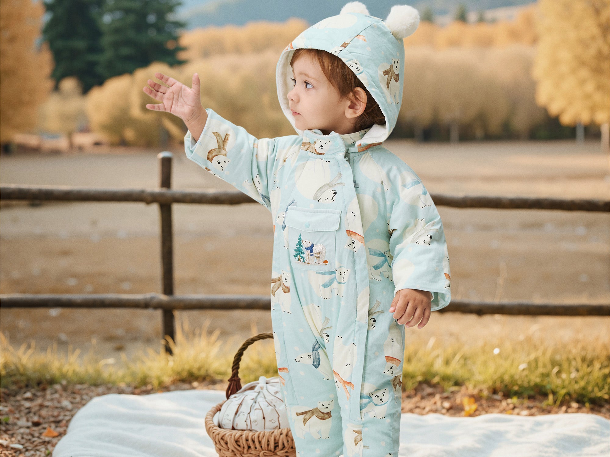 Lightweight Cotton Baby Snowsuit with Arctic Animal Print | Soft & Cozy Winter Romper (5°C~15°C)