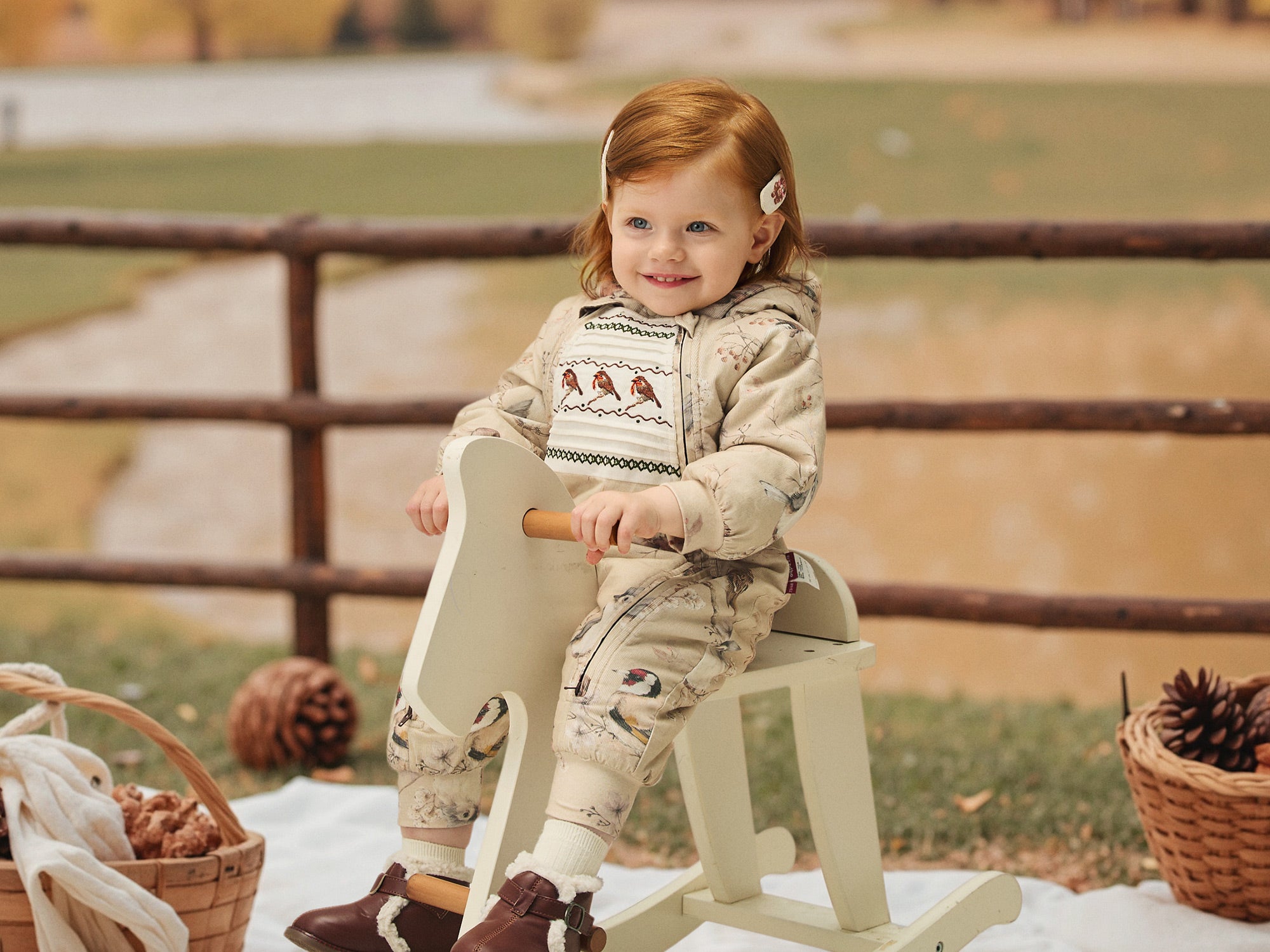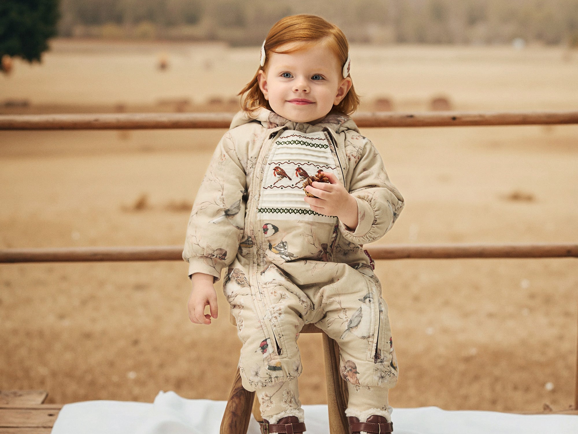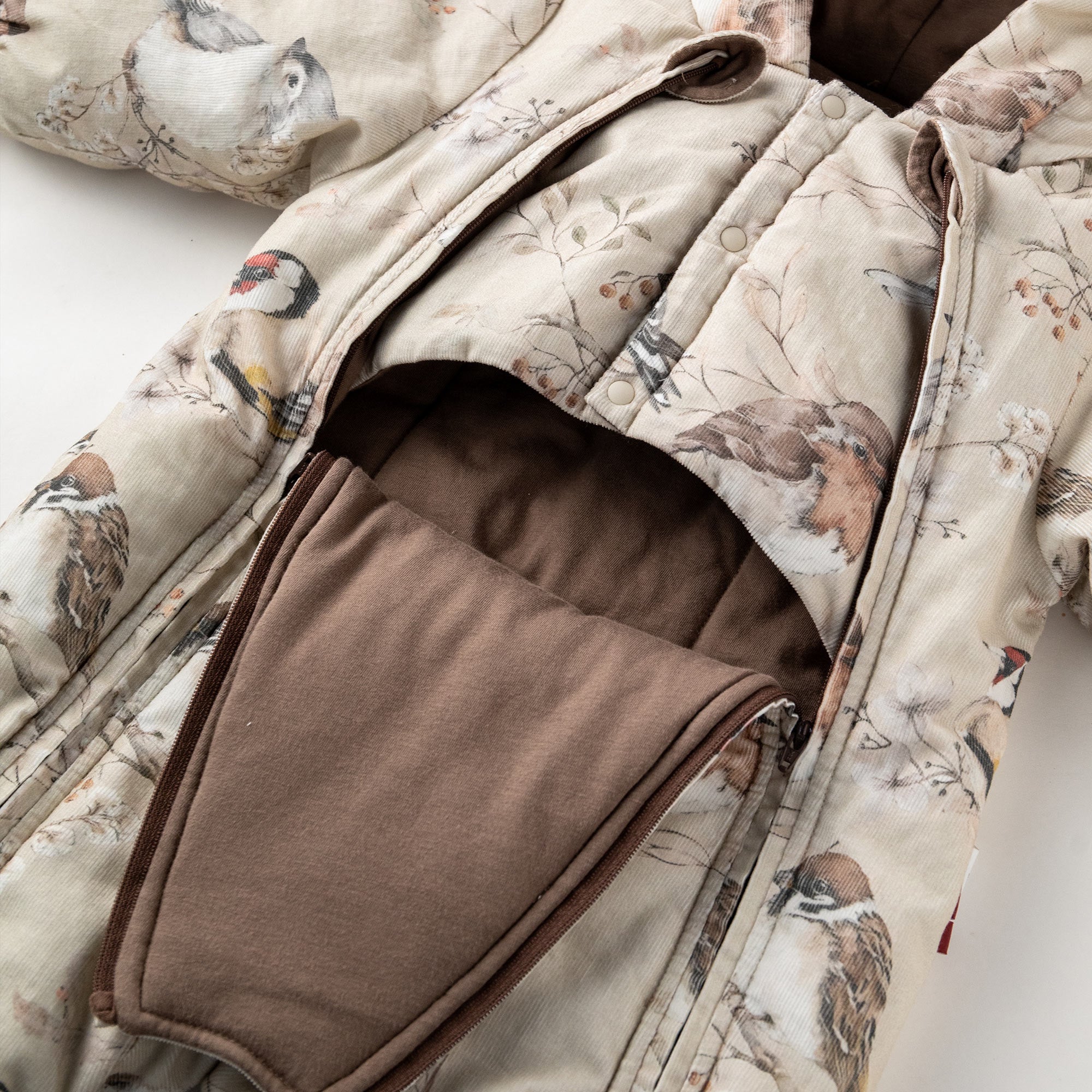 Baby Corduroy Bird Romper – 3-Layer “Sandwich” Thermal System | 160g Cotton Filling | Perfect for 5℃–15℃ Weather