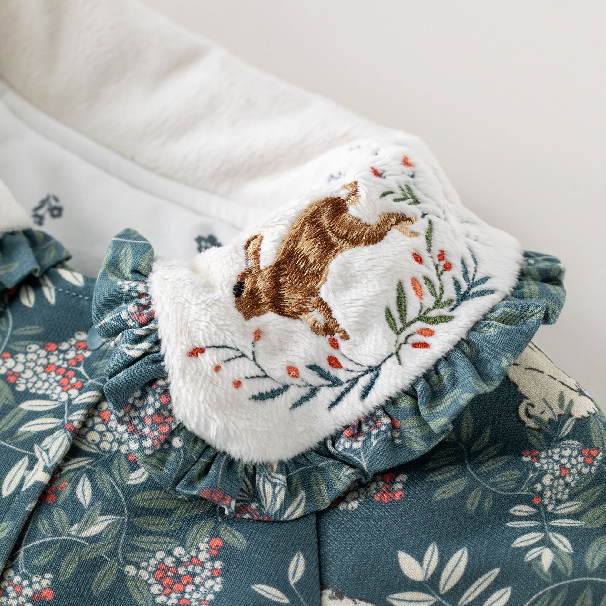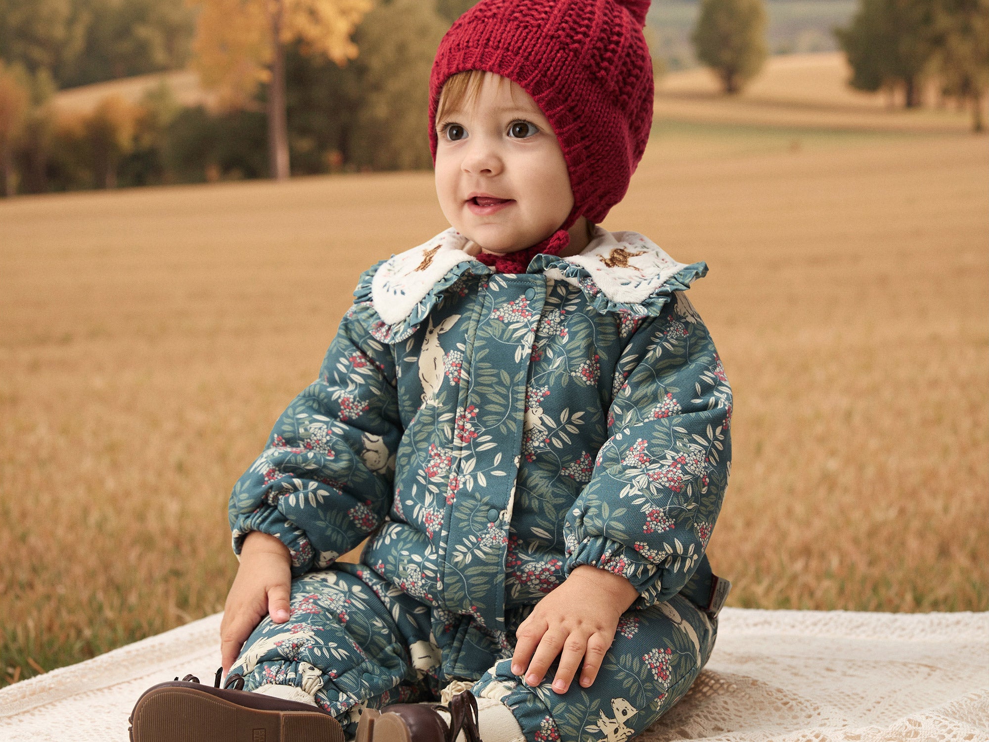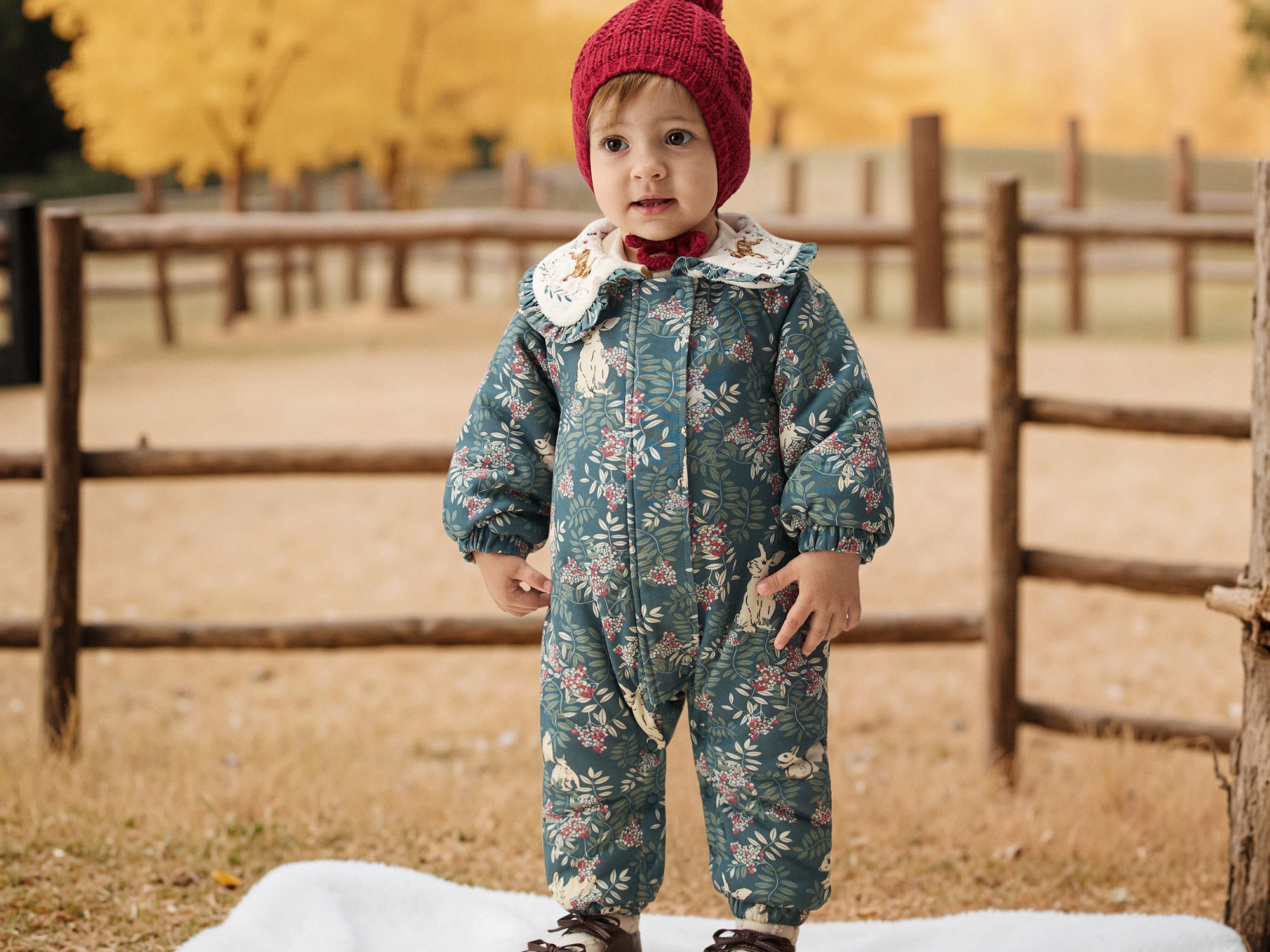 Baby Floral Puffer Romper – 3-Layer Thermal Cotton Jumpsuit for 5℃–15℃ Weather