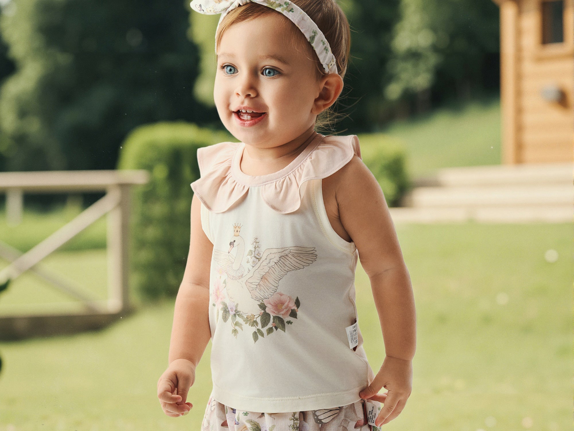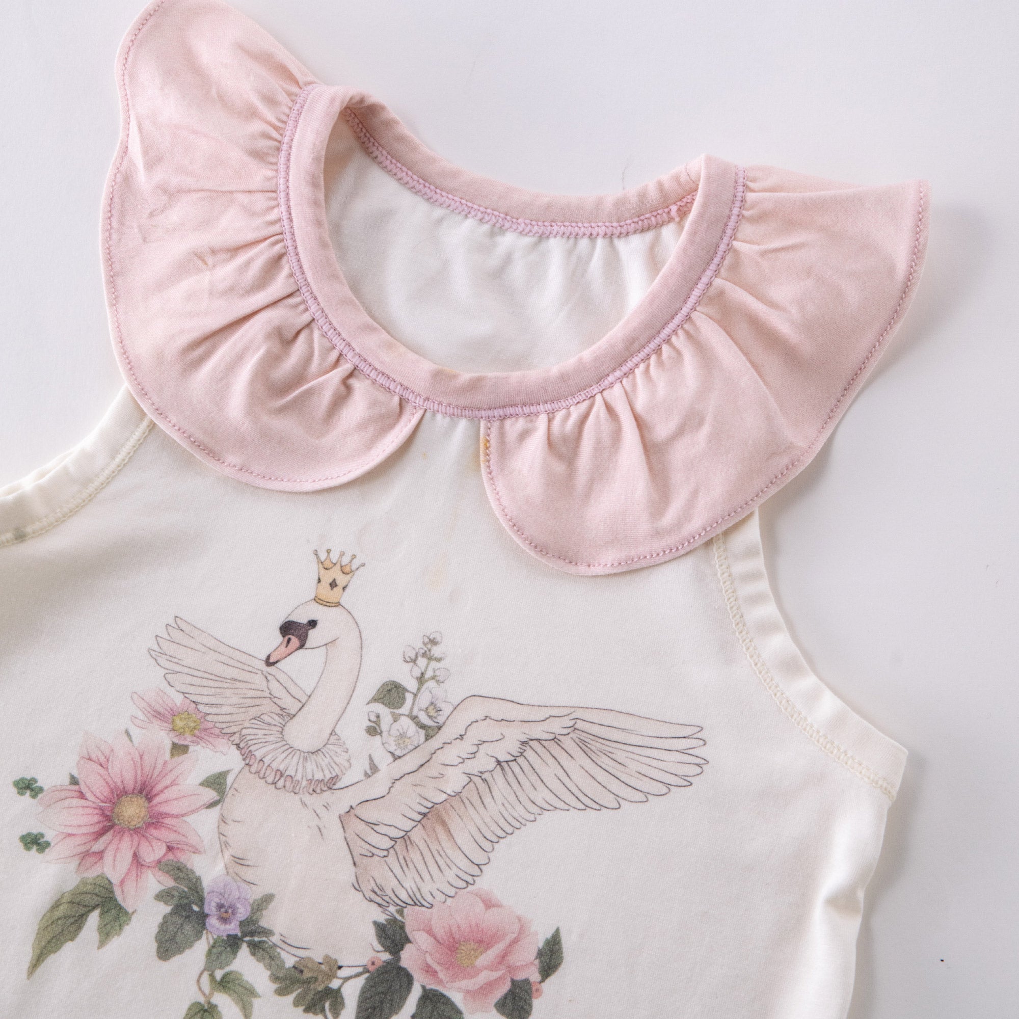 Baby Girl Swan Tank Top – Soft Cotton Sleeveless Shirt with Ruffle Collar |🦢🌸