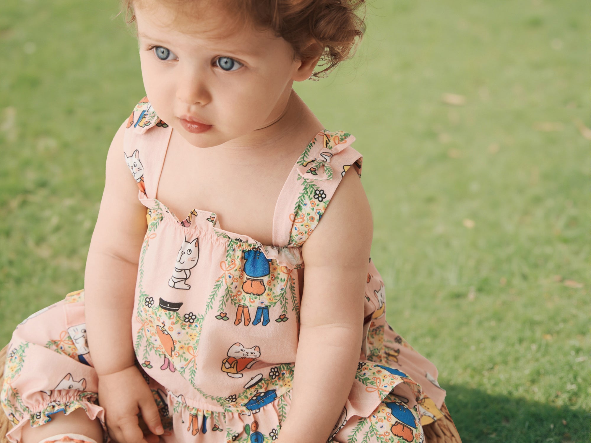 🐱 Kitty Fun Baby Top – Soft Cotton with Ruffle Straps | Baby Girl Summer Tank 🌸