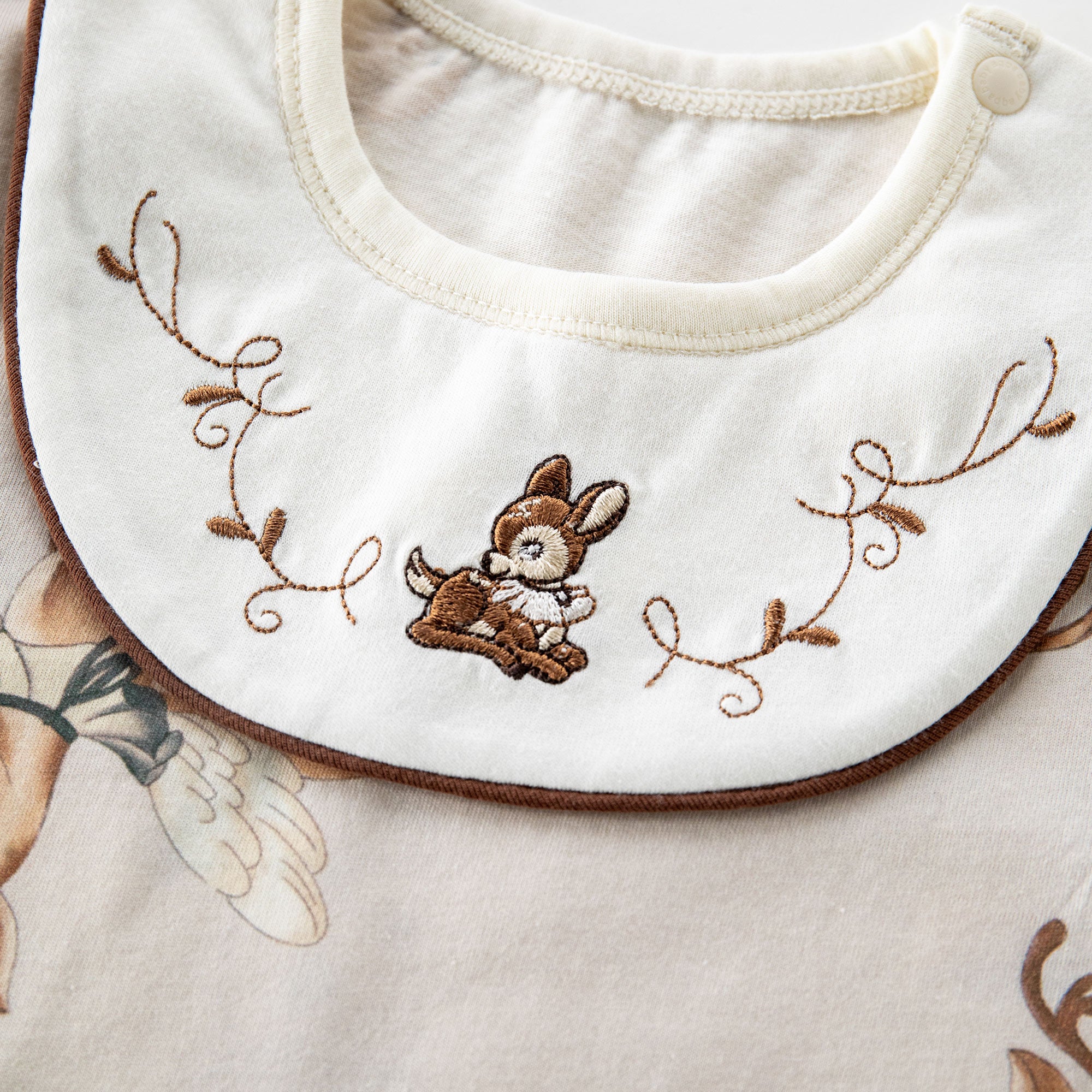 Bib Collar Deer Embroidery Short Sleeve Romper (3mths-2yrs)