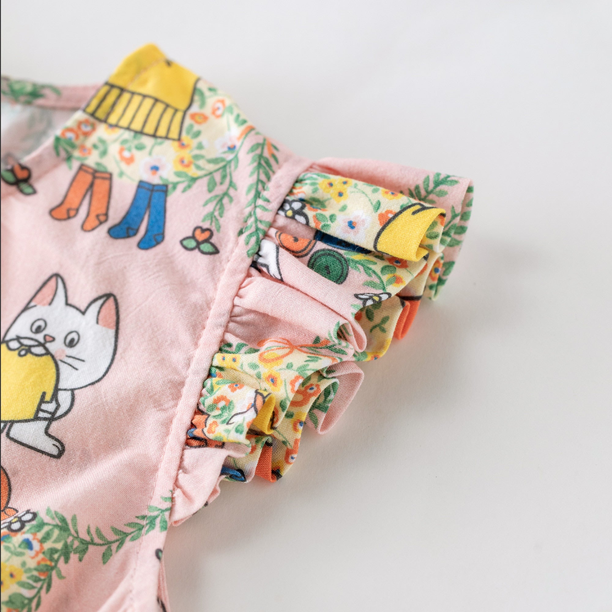 🐱 Kitty Fun Baby Onesie – Soft Cotton with Ruffle Sleeves | Cute Baby Girl Bodysuit 🌸