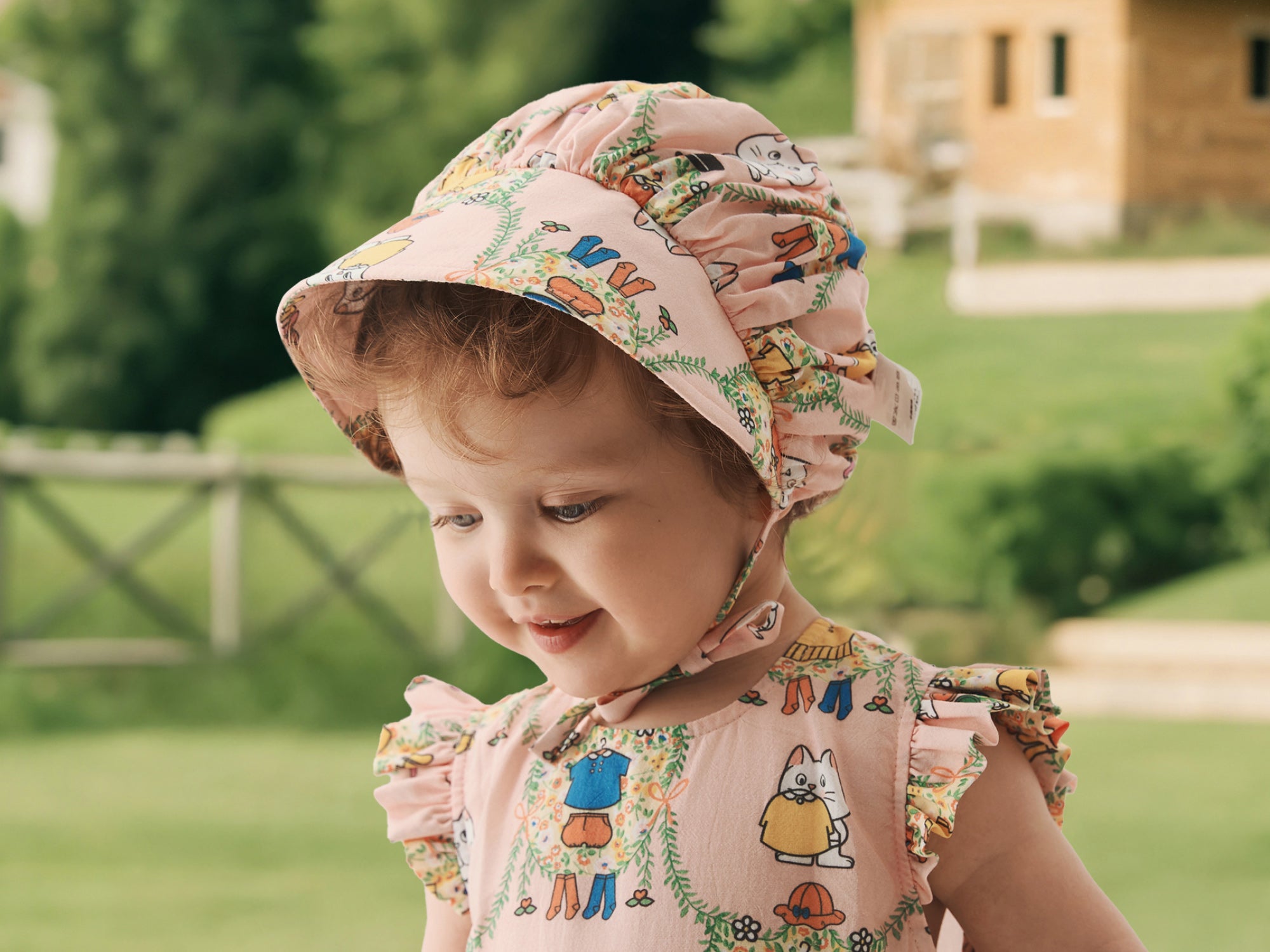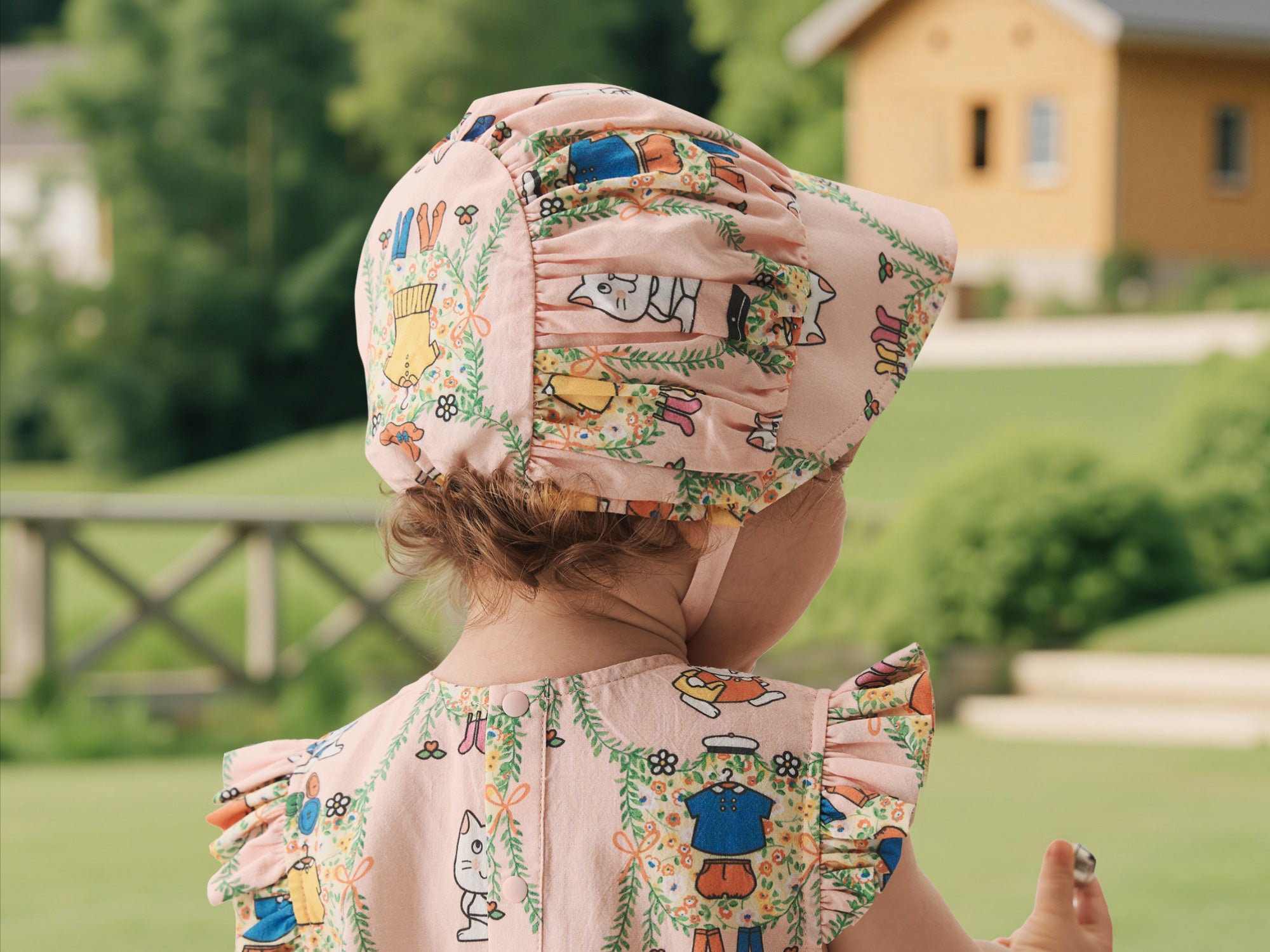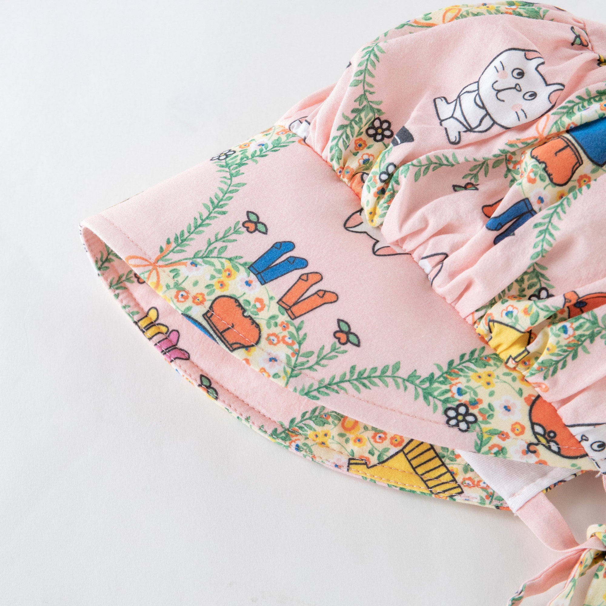 🐱 Kitty Garden Baby Hat – Soft Cotton with Ruffle Trim | Baby Girl Sun Hat 🌸