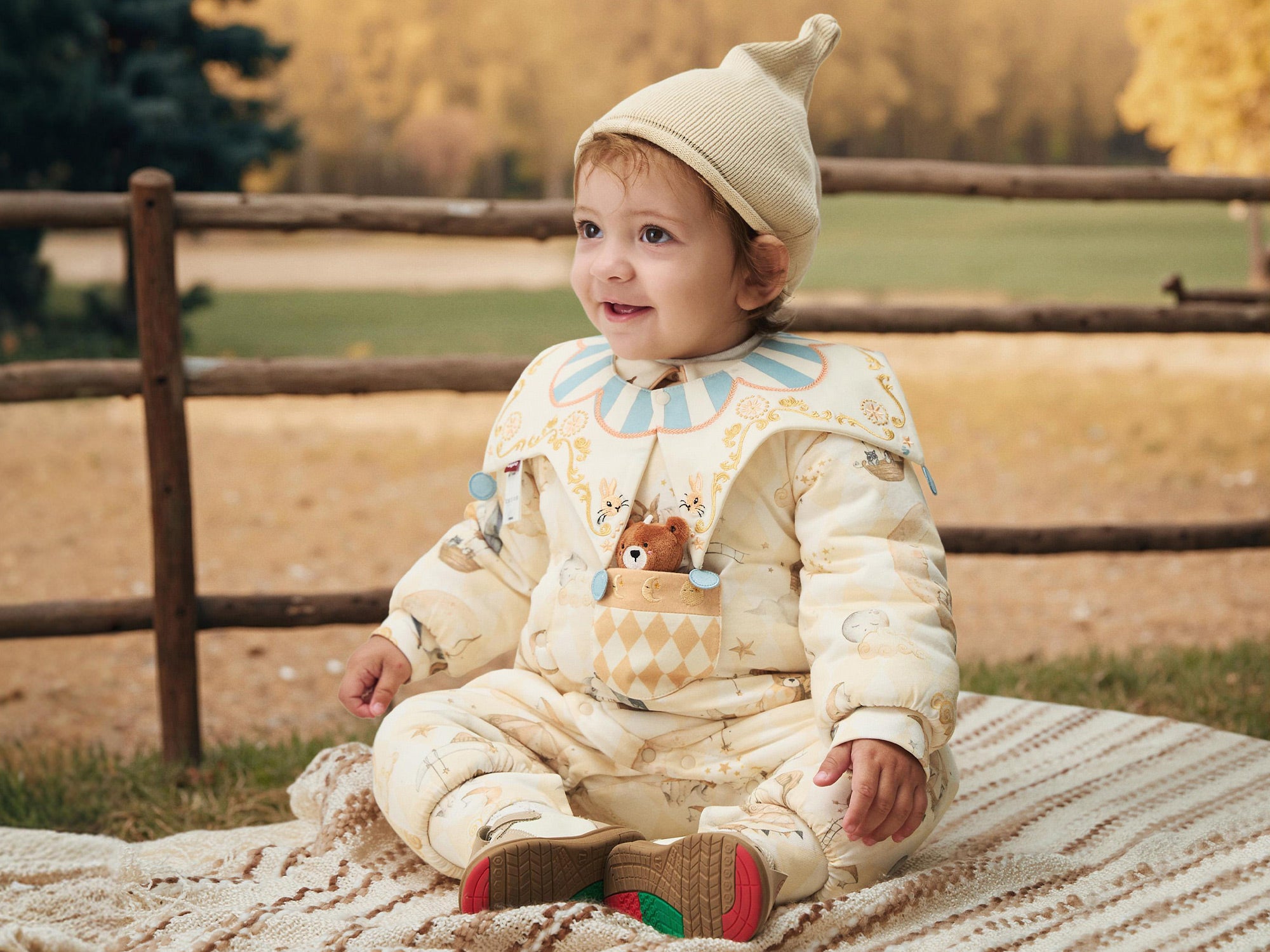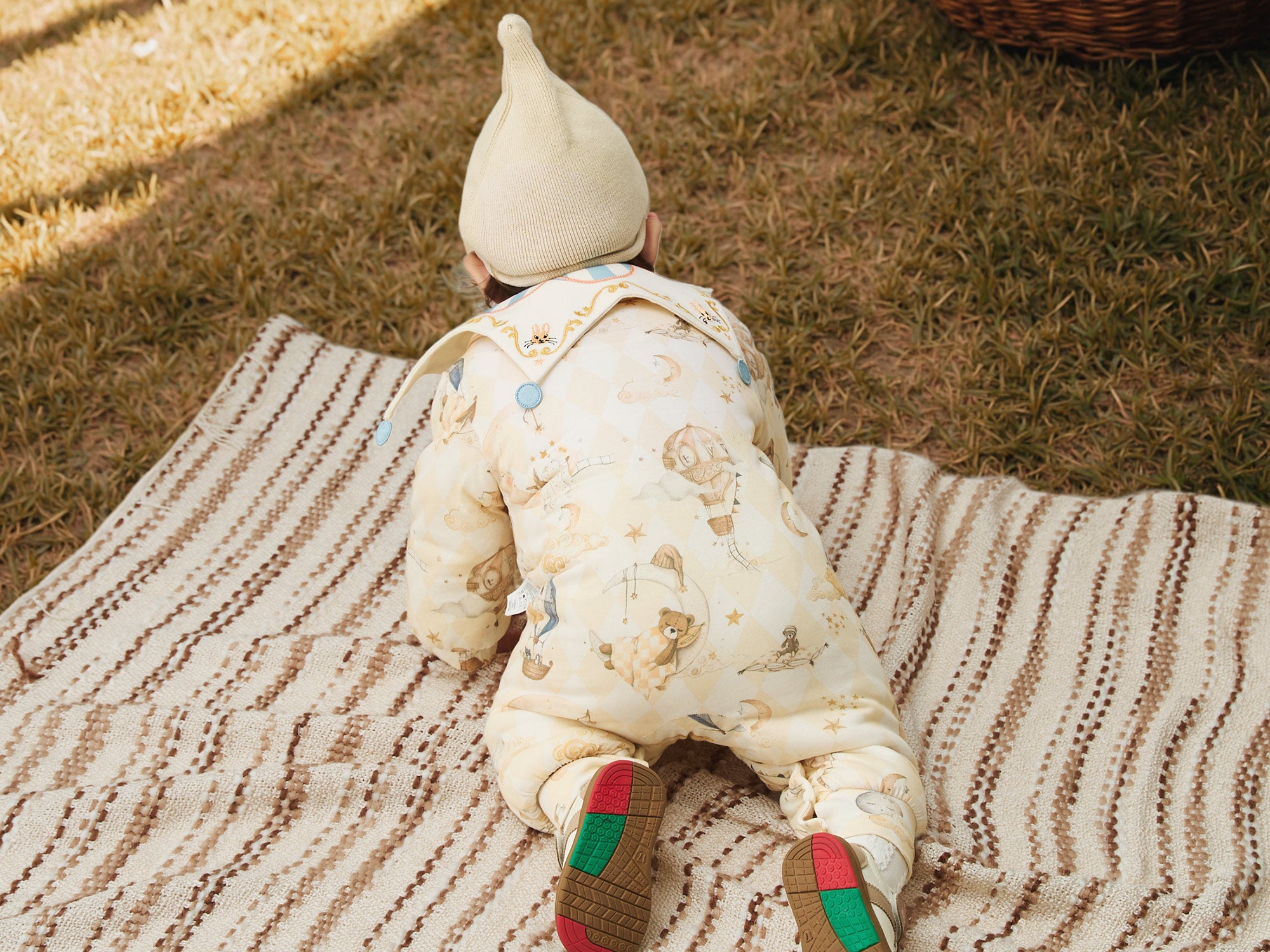 Vintage-Inspired Cotton Baby Romper with Peter Pan Collar | Cozy Storybook Print One-Piece (5°C–15°C)