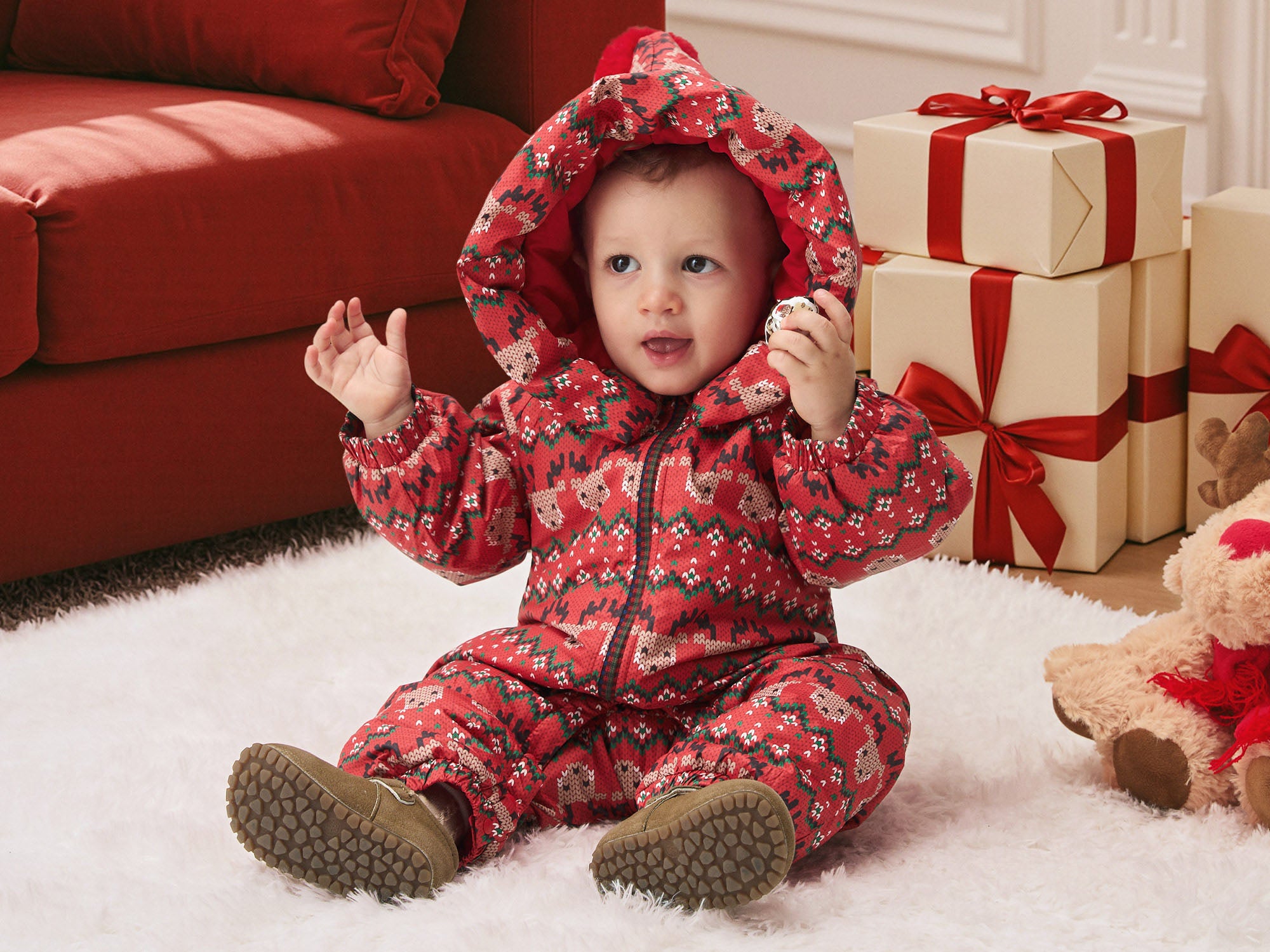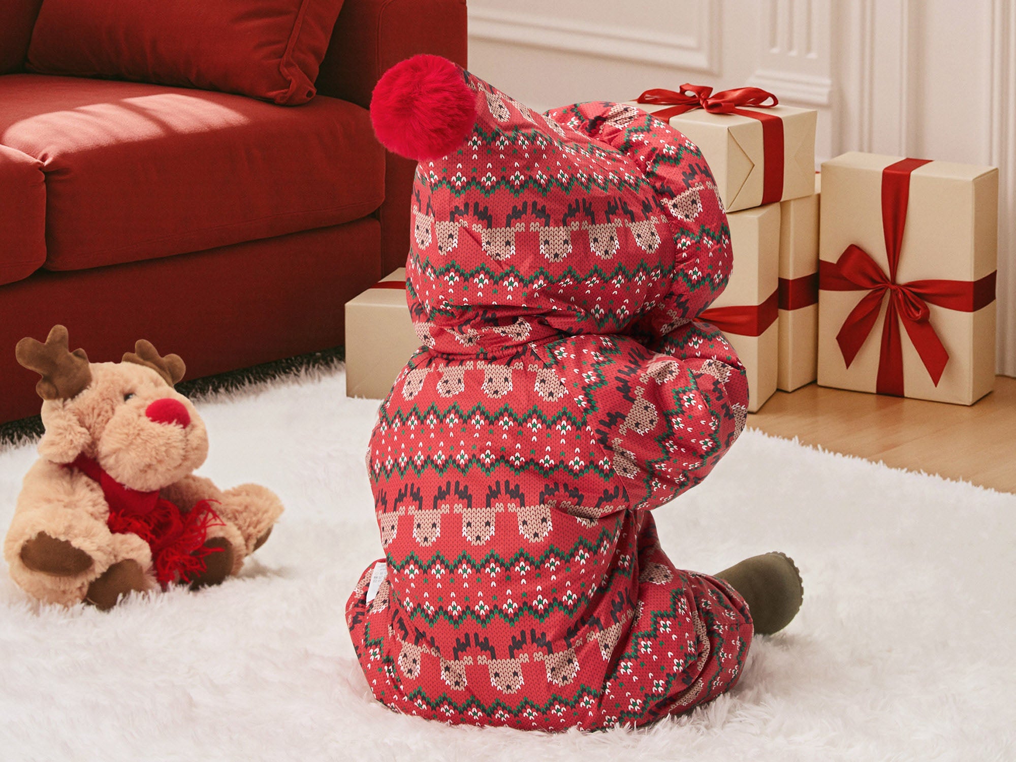 Cozy Fair Isle Baby Snowsuit | Warm Hooded Winter One-Piece for Holiday Season