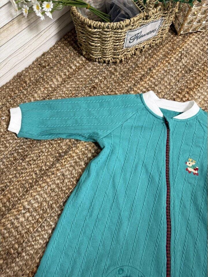 Custom-Dyed Fabric + Reindeer Embroidery + Christmas Baby Romper