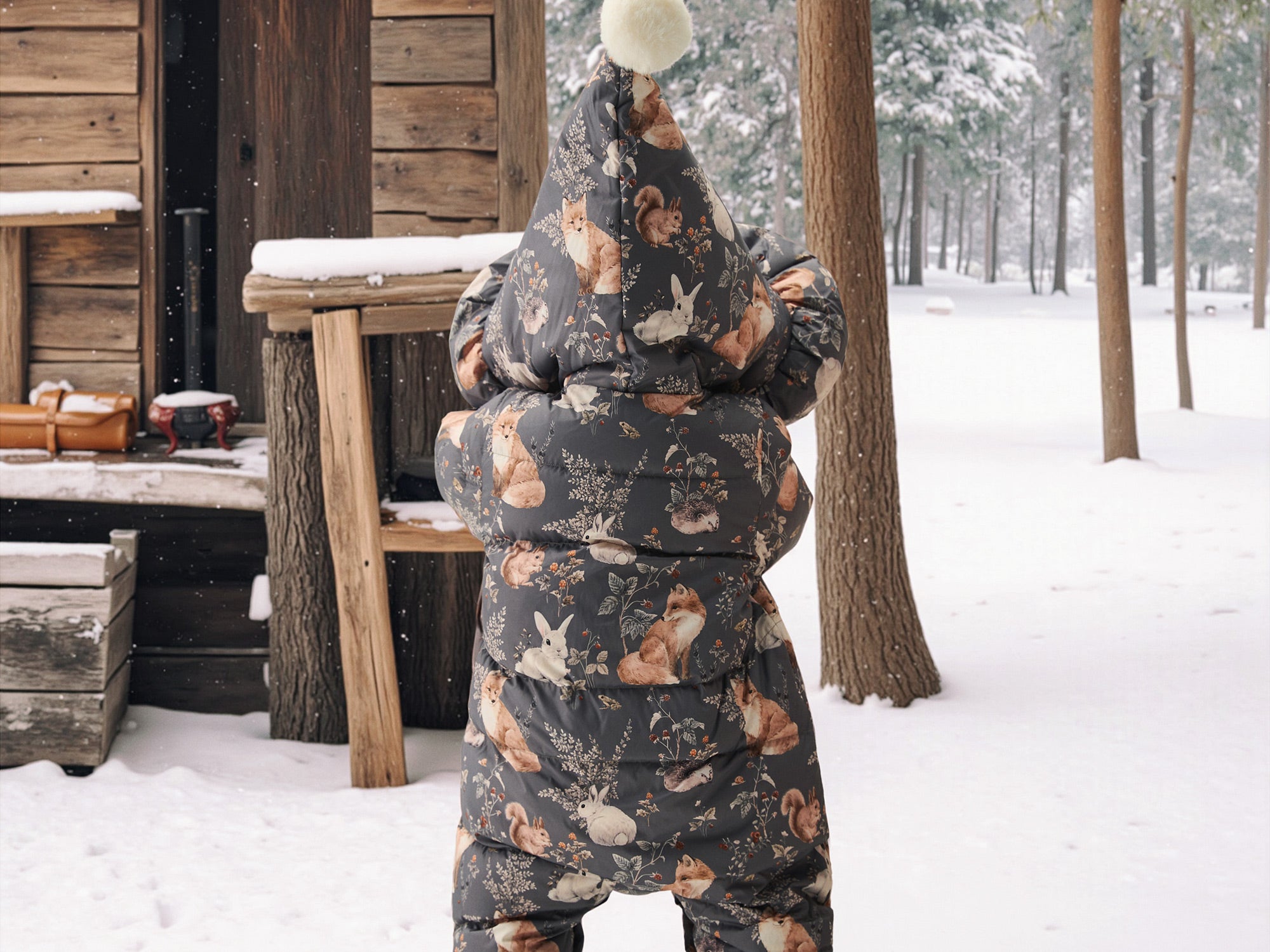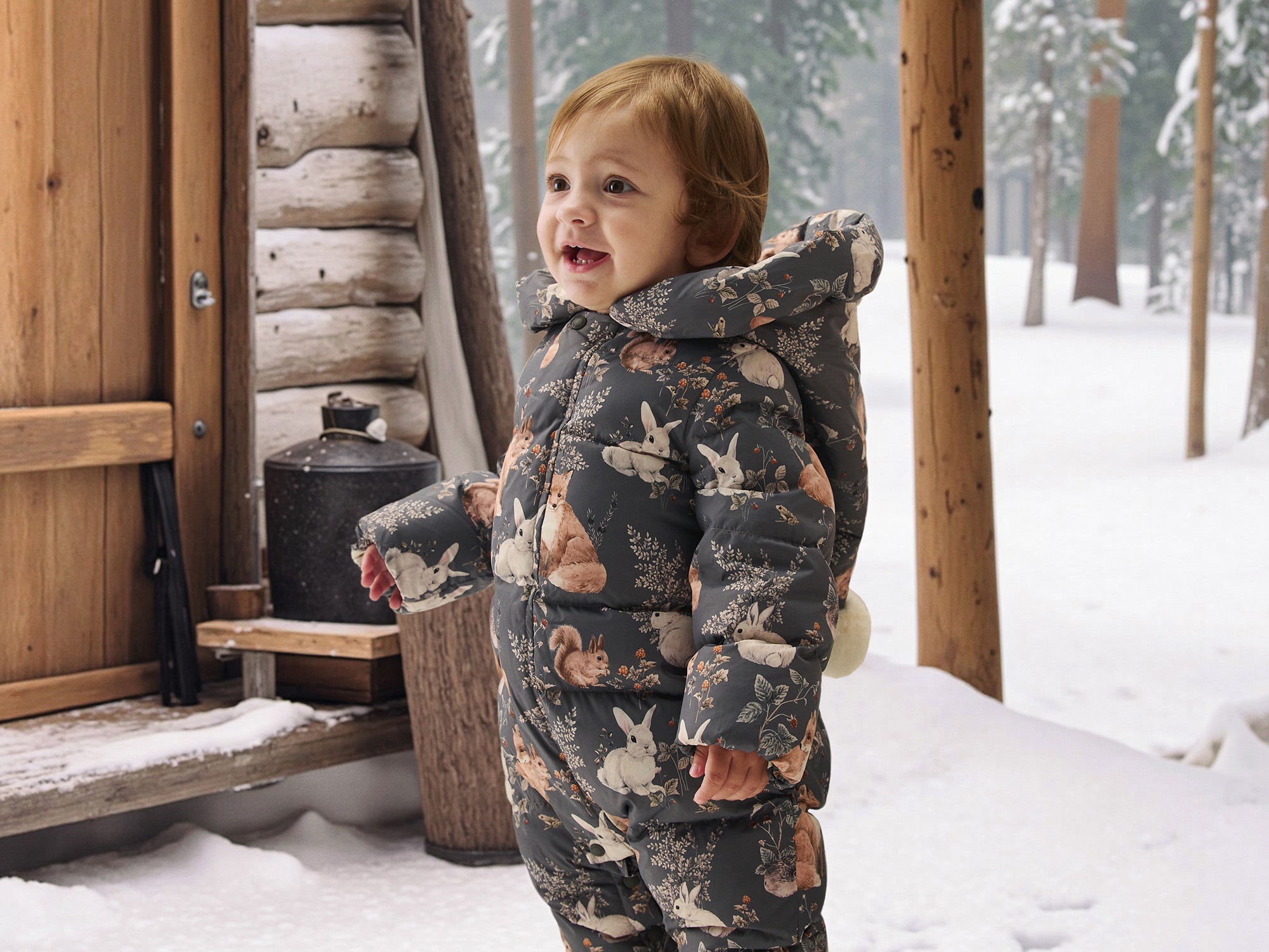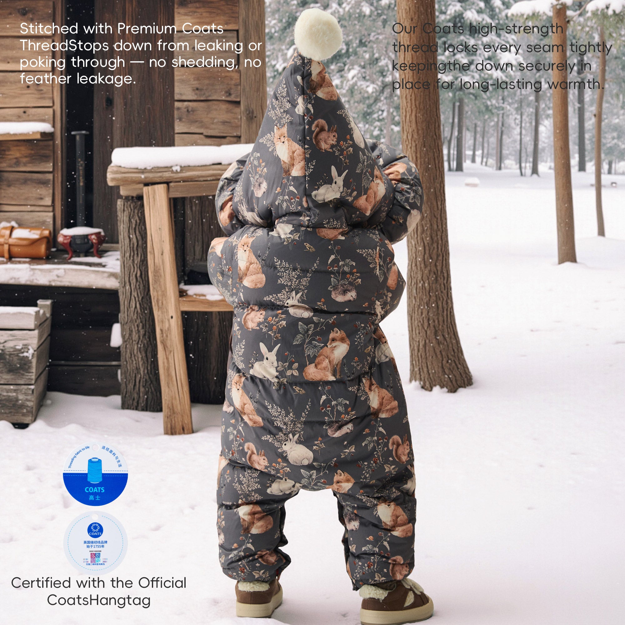 Cozy Down Baby Snowsuit with Forest Animal Print | Warm Winter Romper (-5°C~10°C)