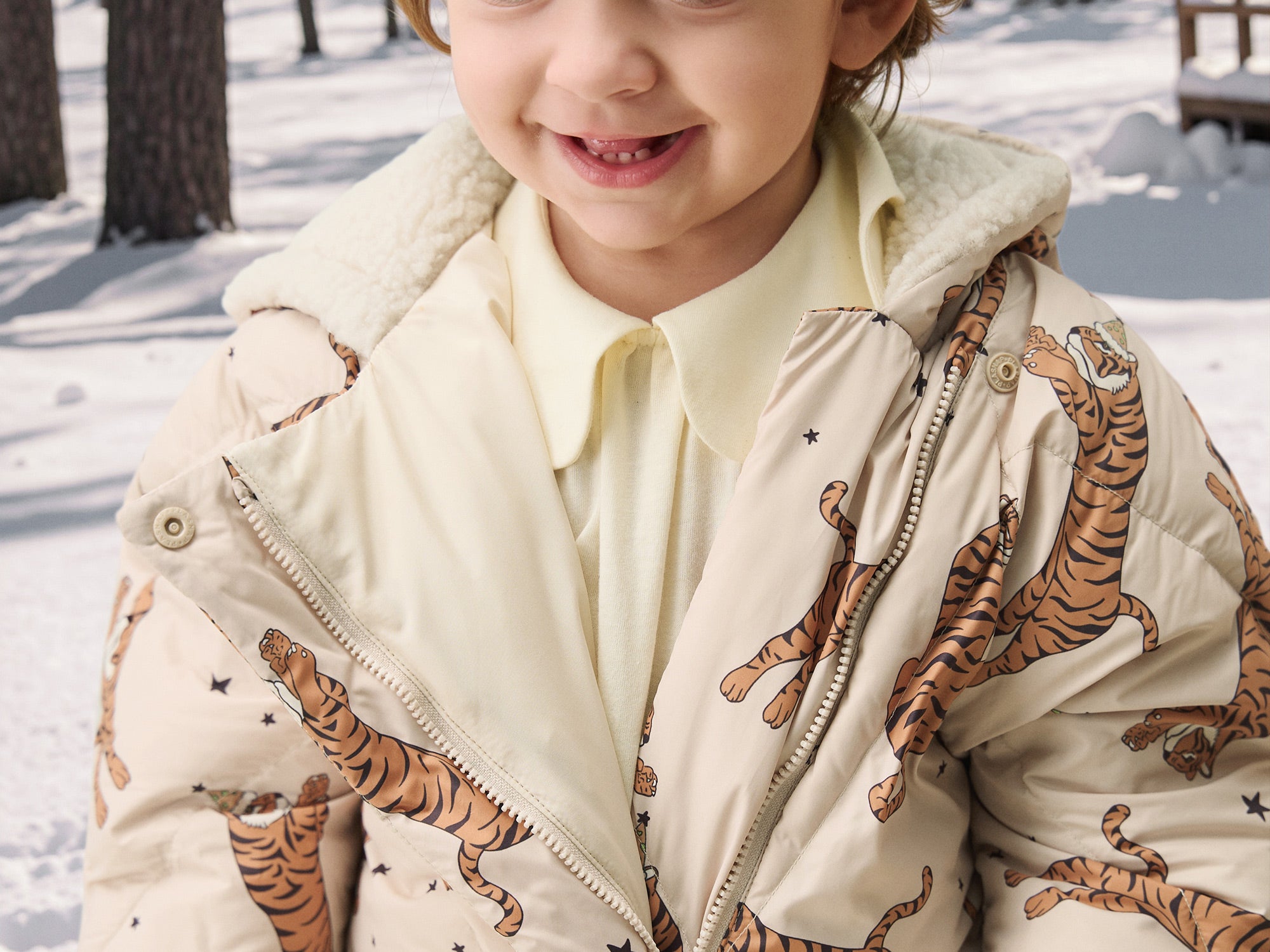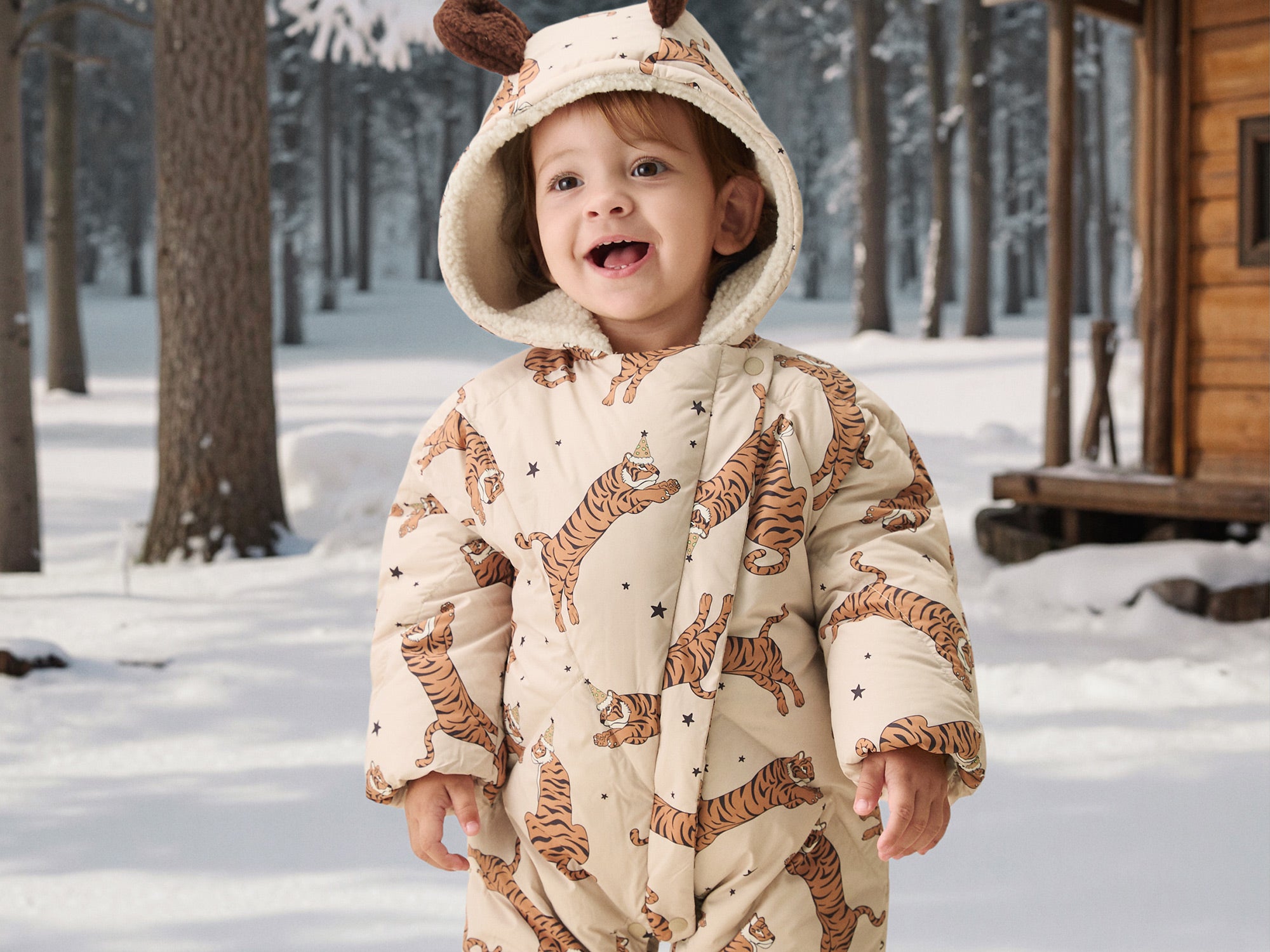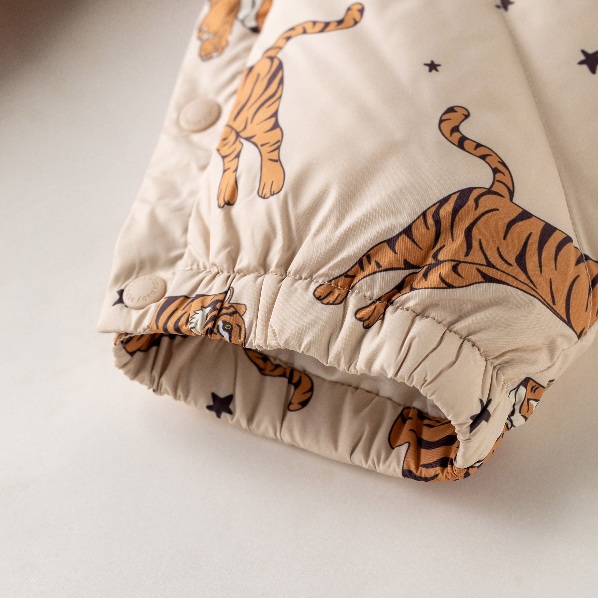 Warm Down Baby Snowsuit with Tiger Print | Cozy Winter Romper for Boys & Girls (-5°C~10°C)