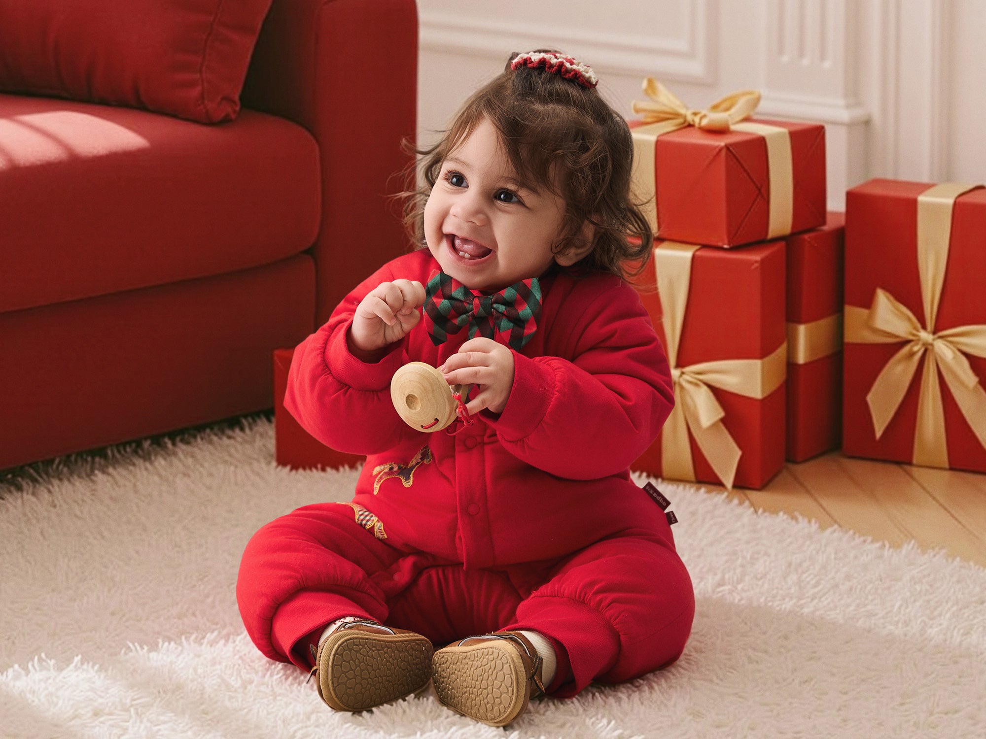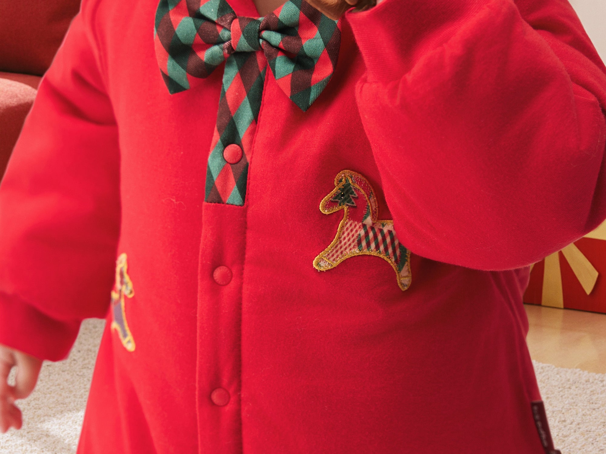 Festive Red Baby Romper | Soft Warm Cotton One-Piece with Christmas Embroidery (5°C–15°C)