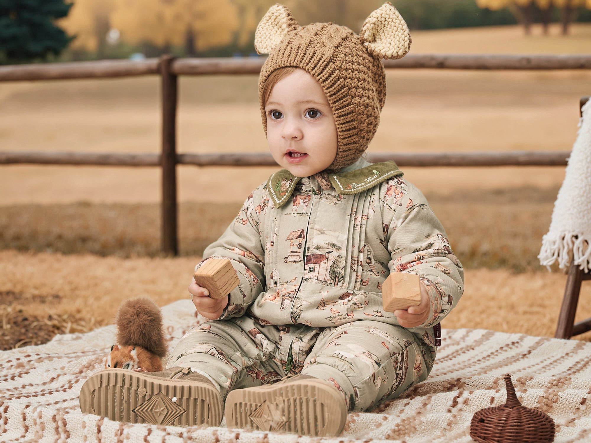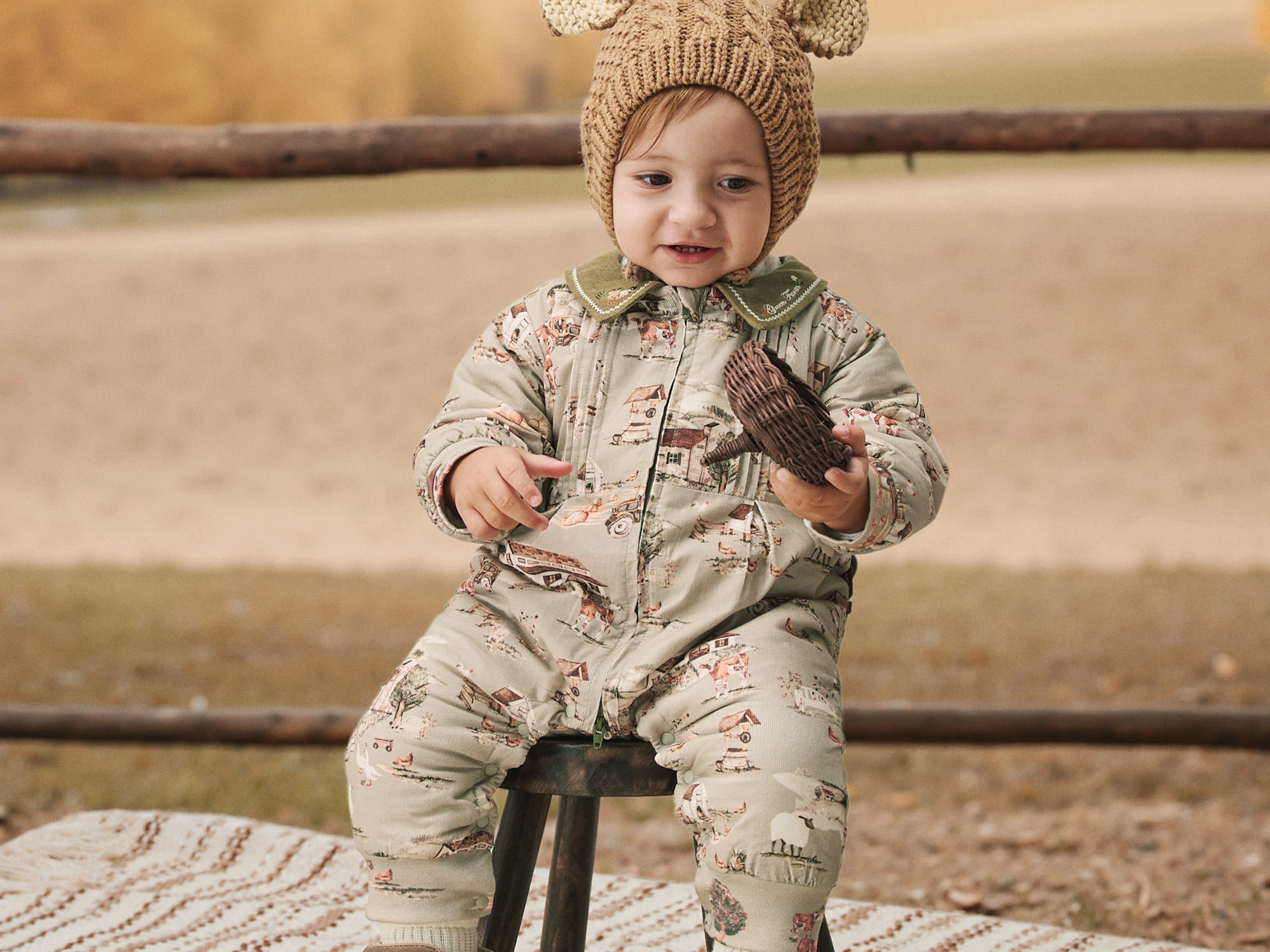 Lightweight Cotton Baby Romper with Countryside Print | Cozy Padded One-Piece for Mild Winter (5°C~15°C)