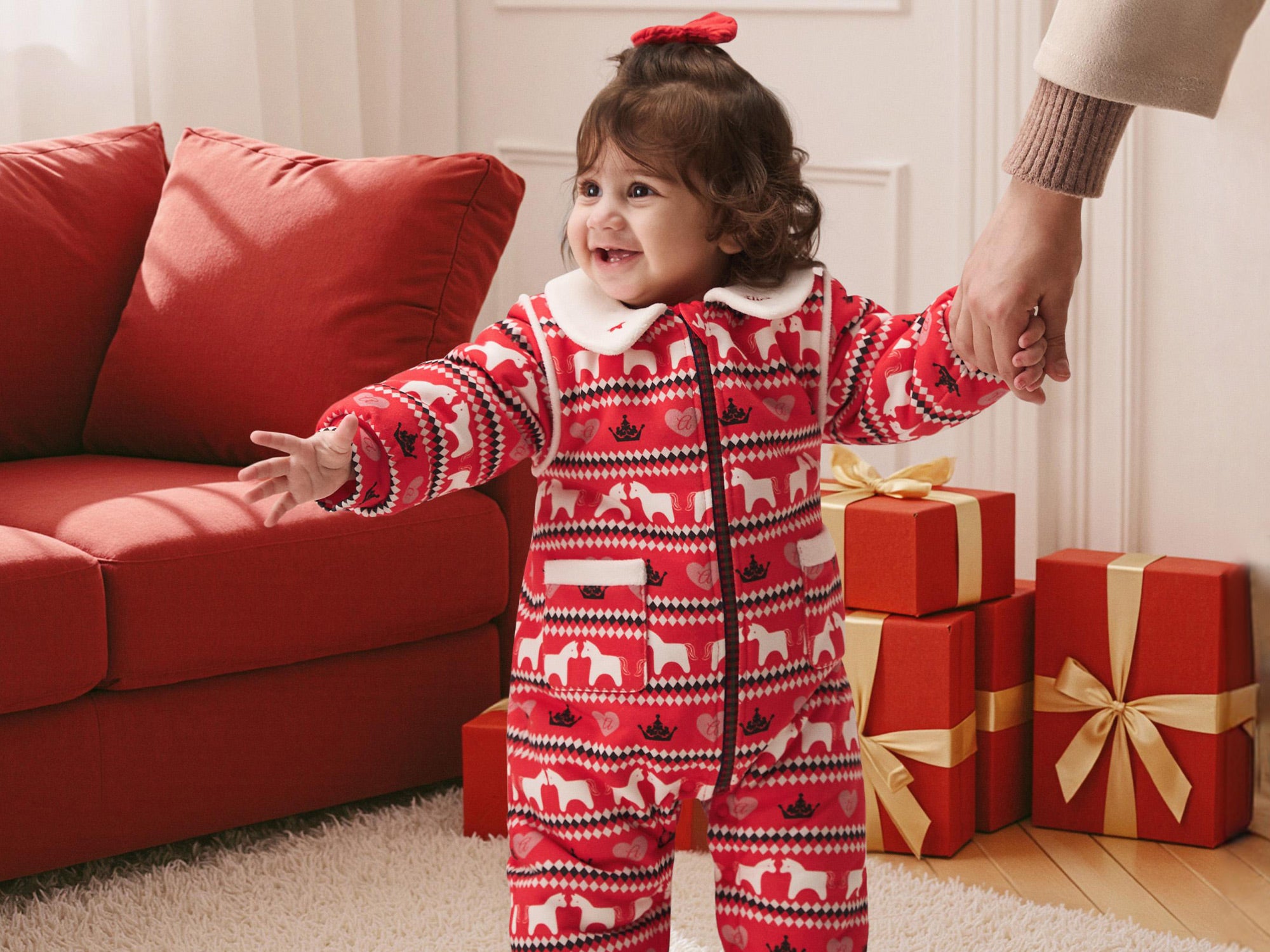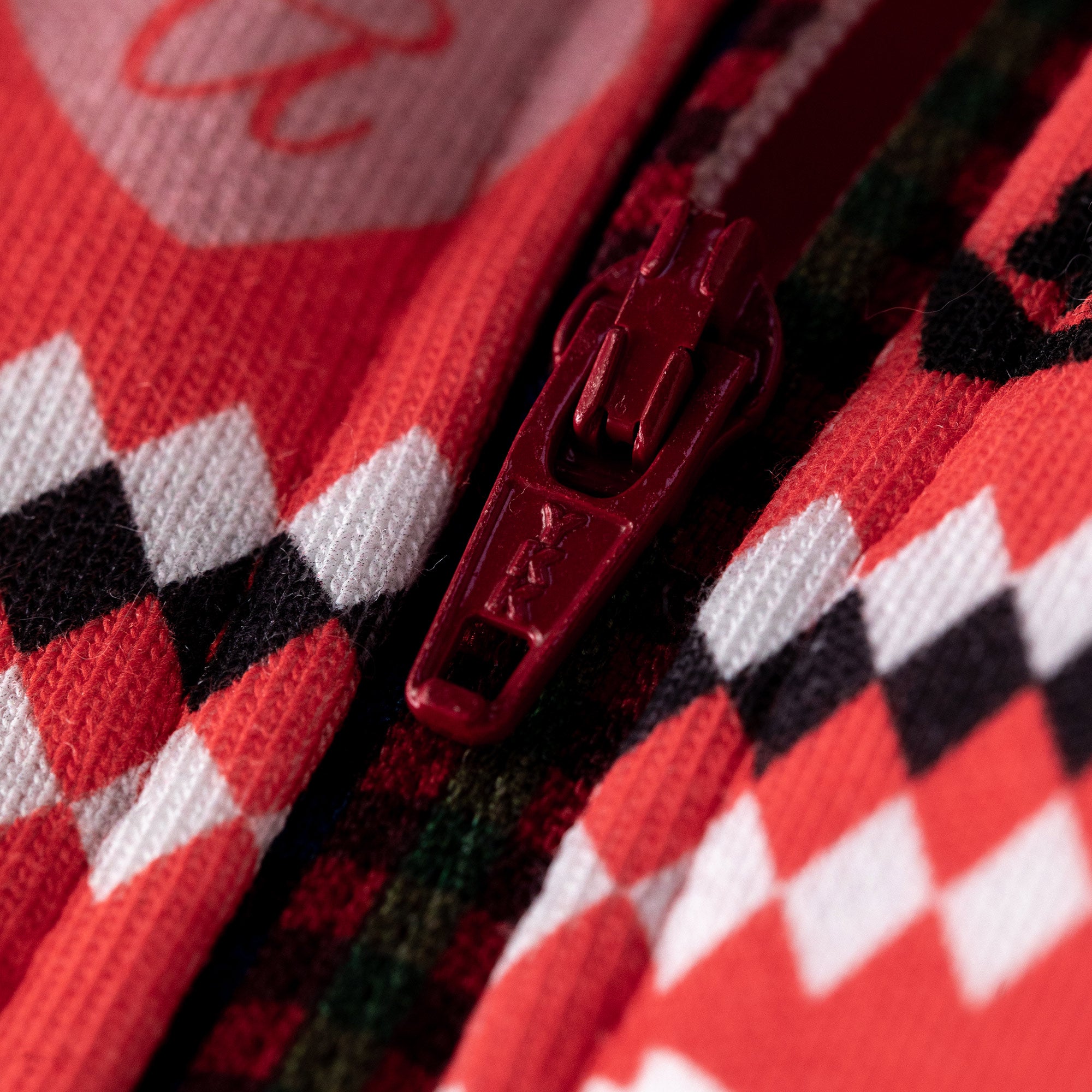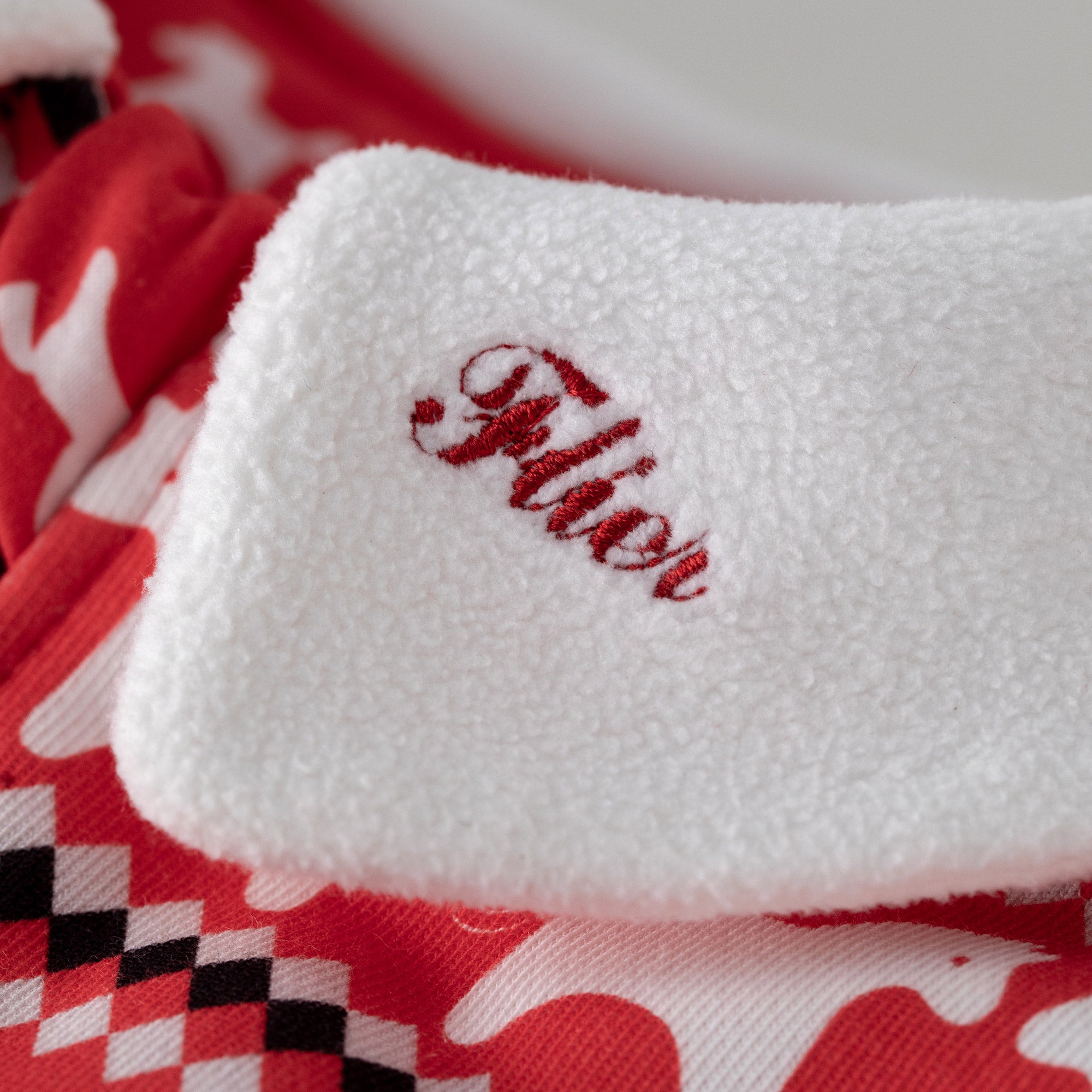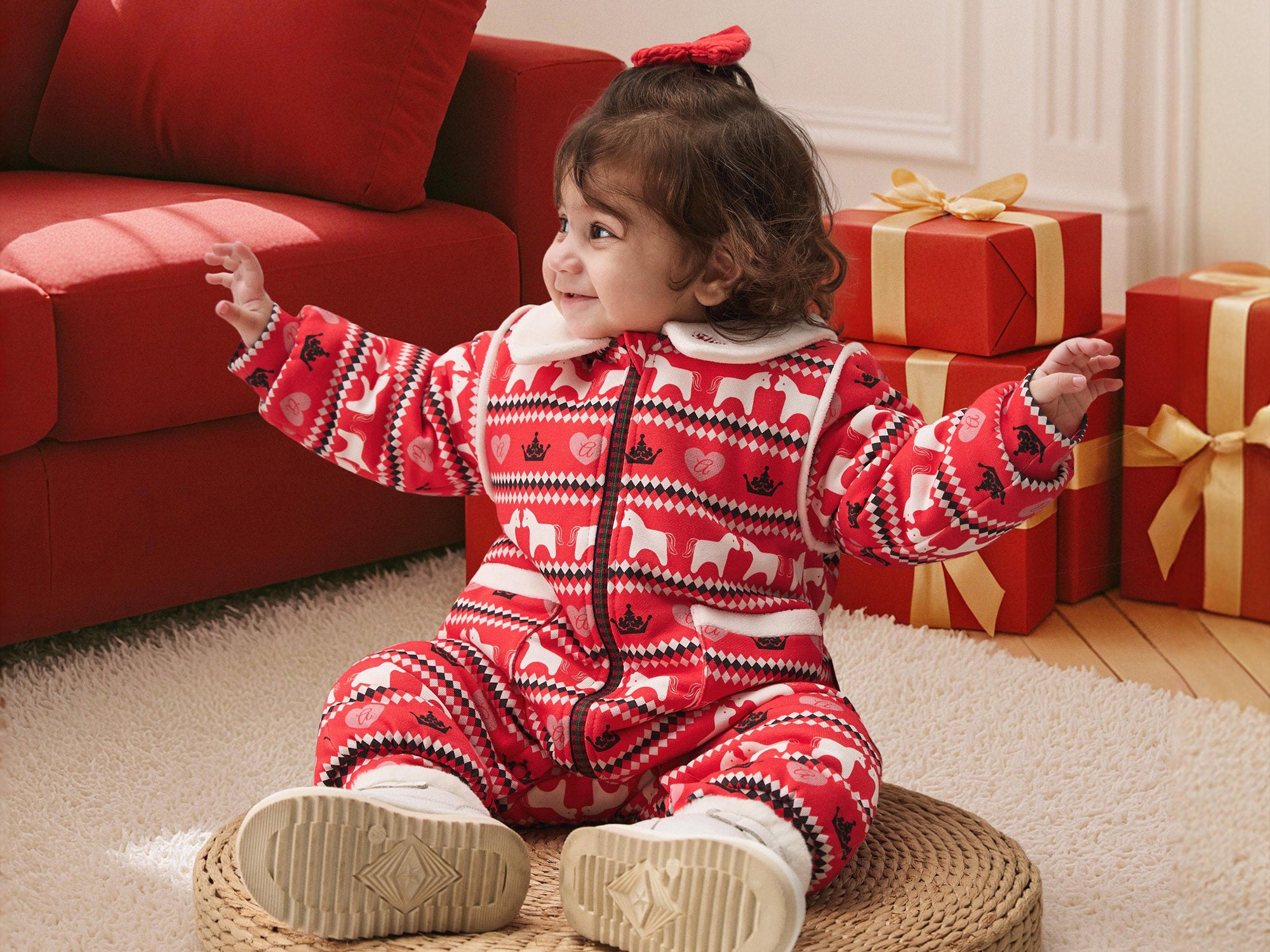 Festive Fair Isle Baby Romper in Red | Cozy Cotton One-Piece with Contrast Collar (5°C–15°C)