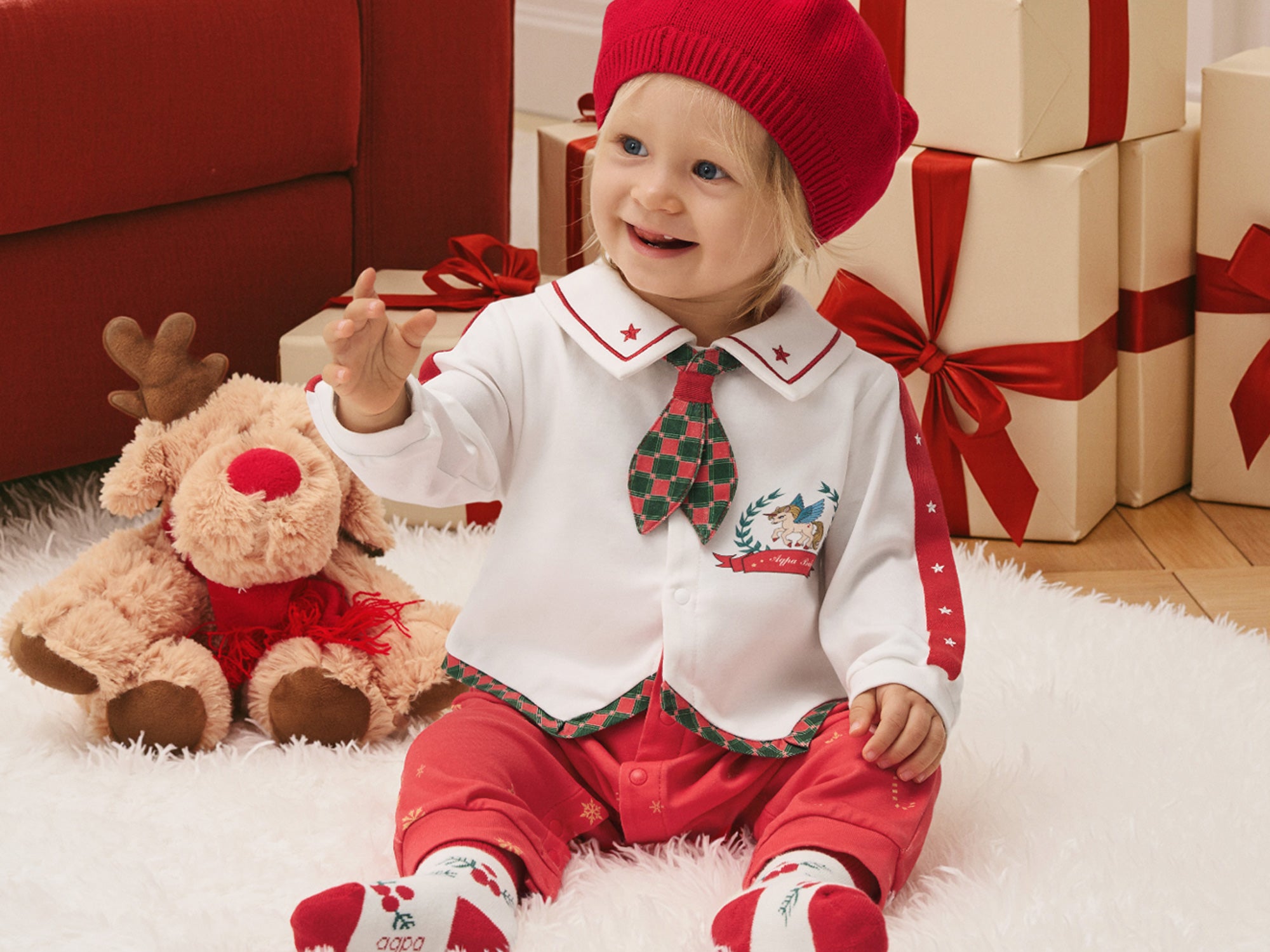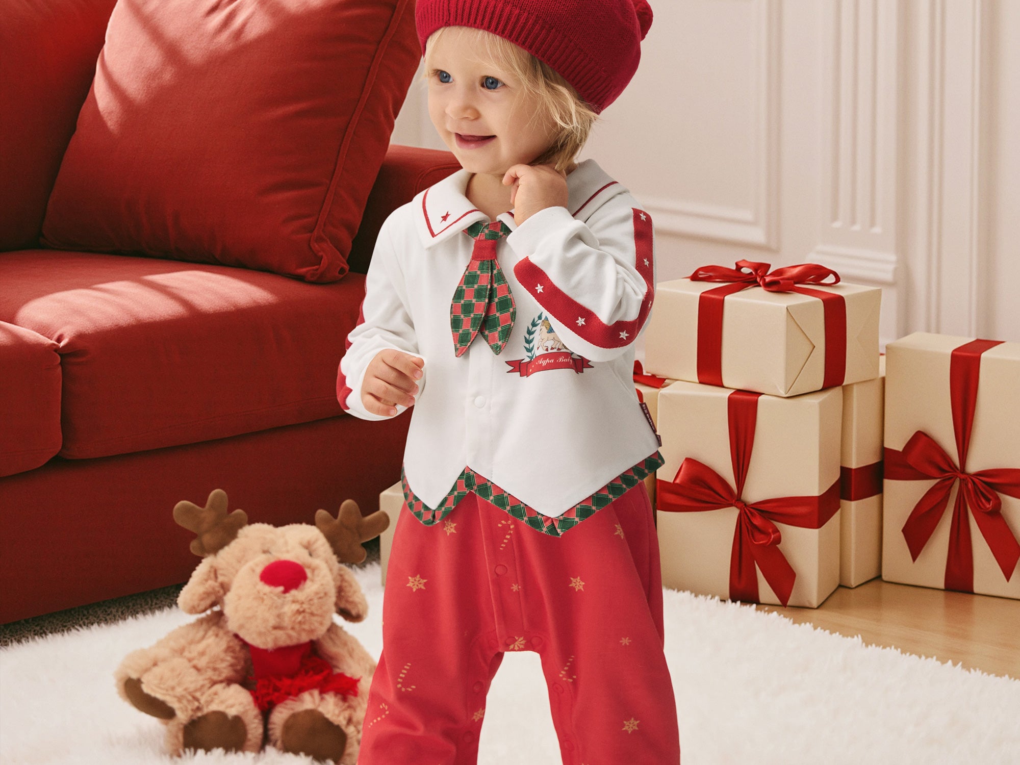 My First Christmas Baby Romper - Festive Santa Suit Style