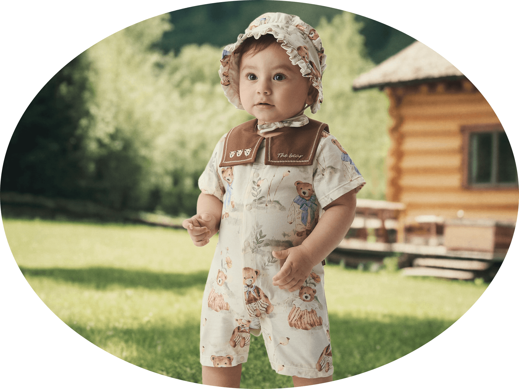 Luxurious Cotton Embroidered Bear Pajamas | Warm Fairytale Baby Bodysuit
