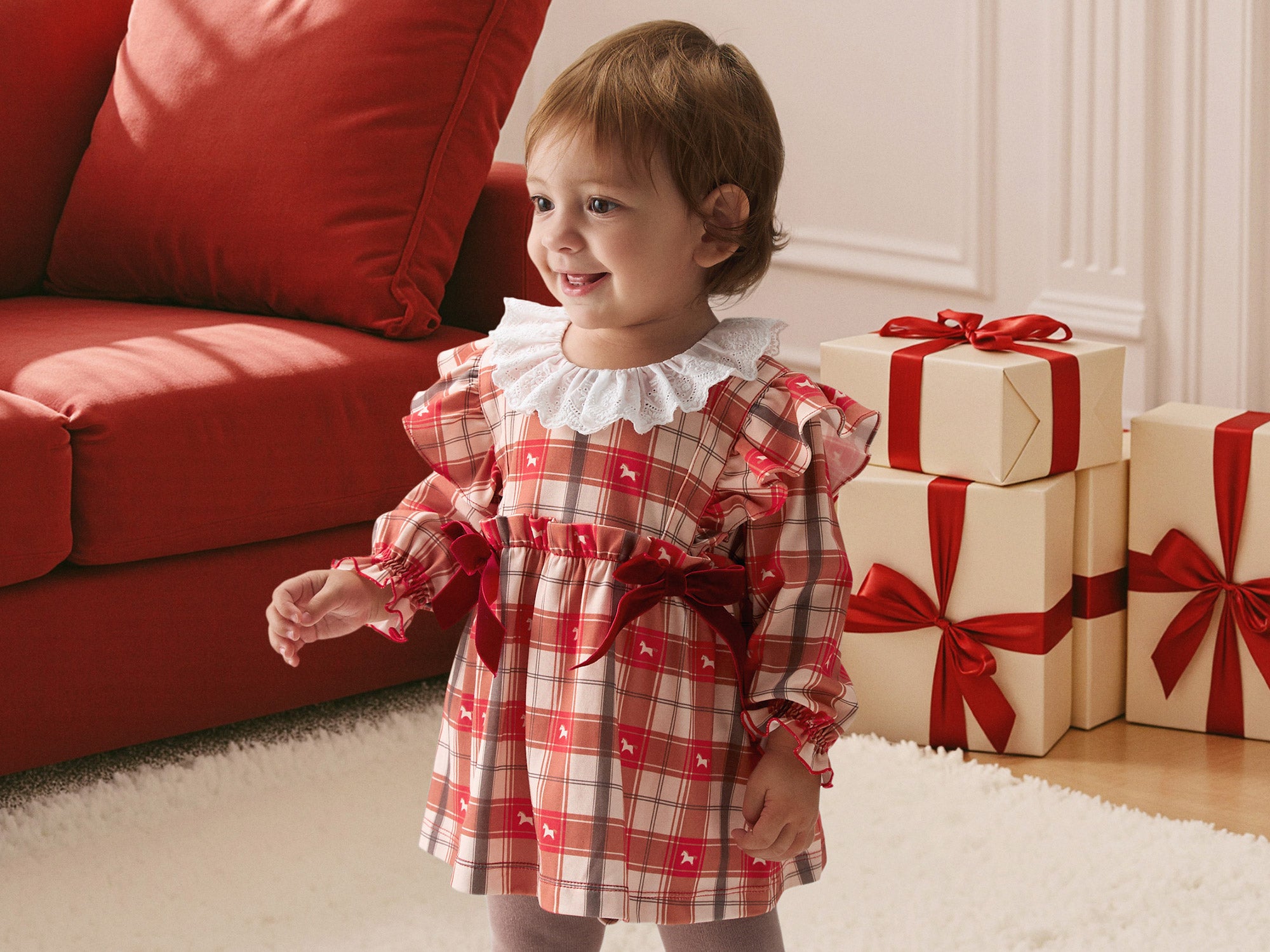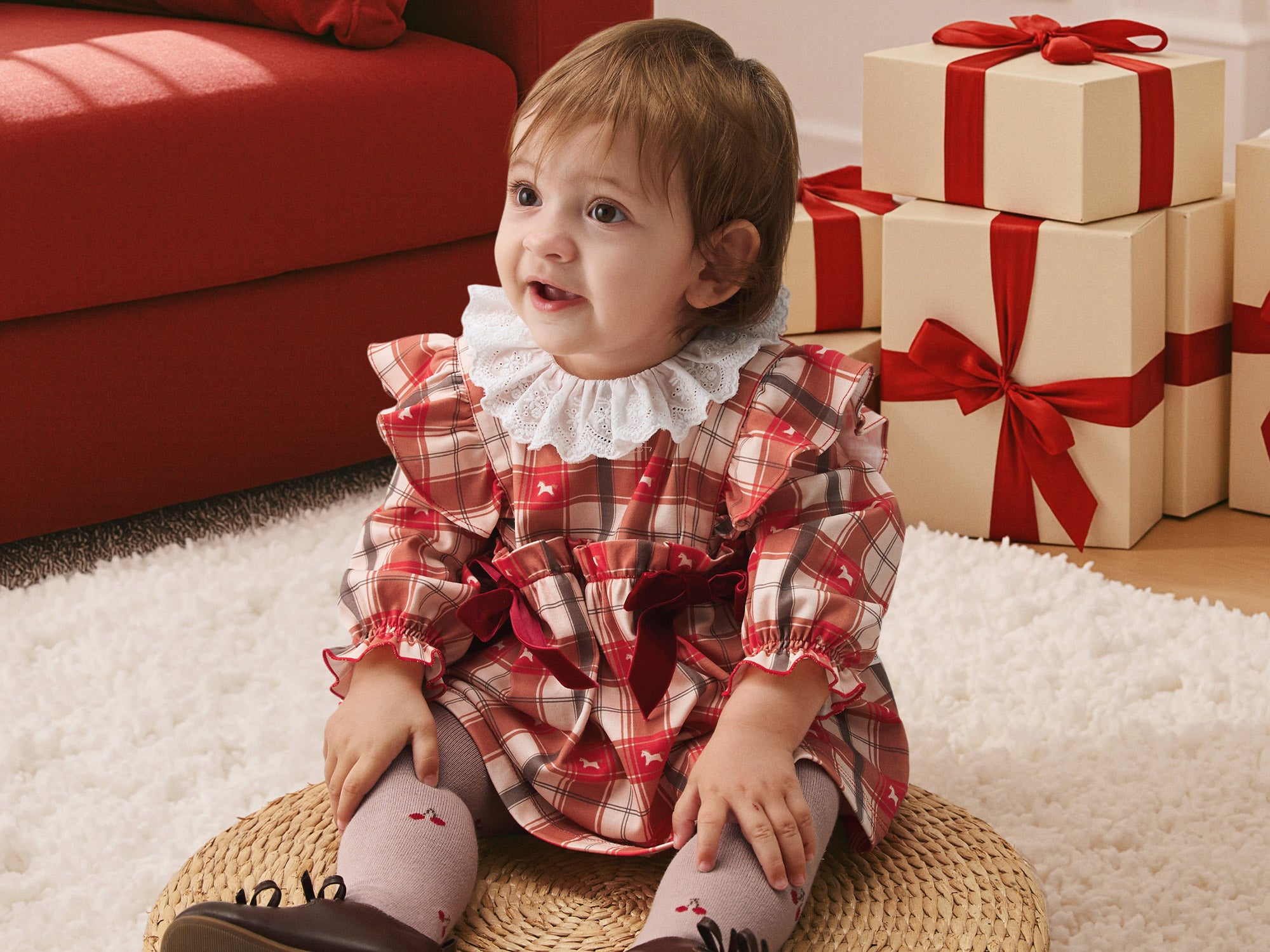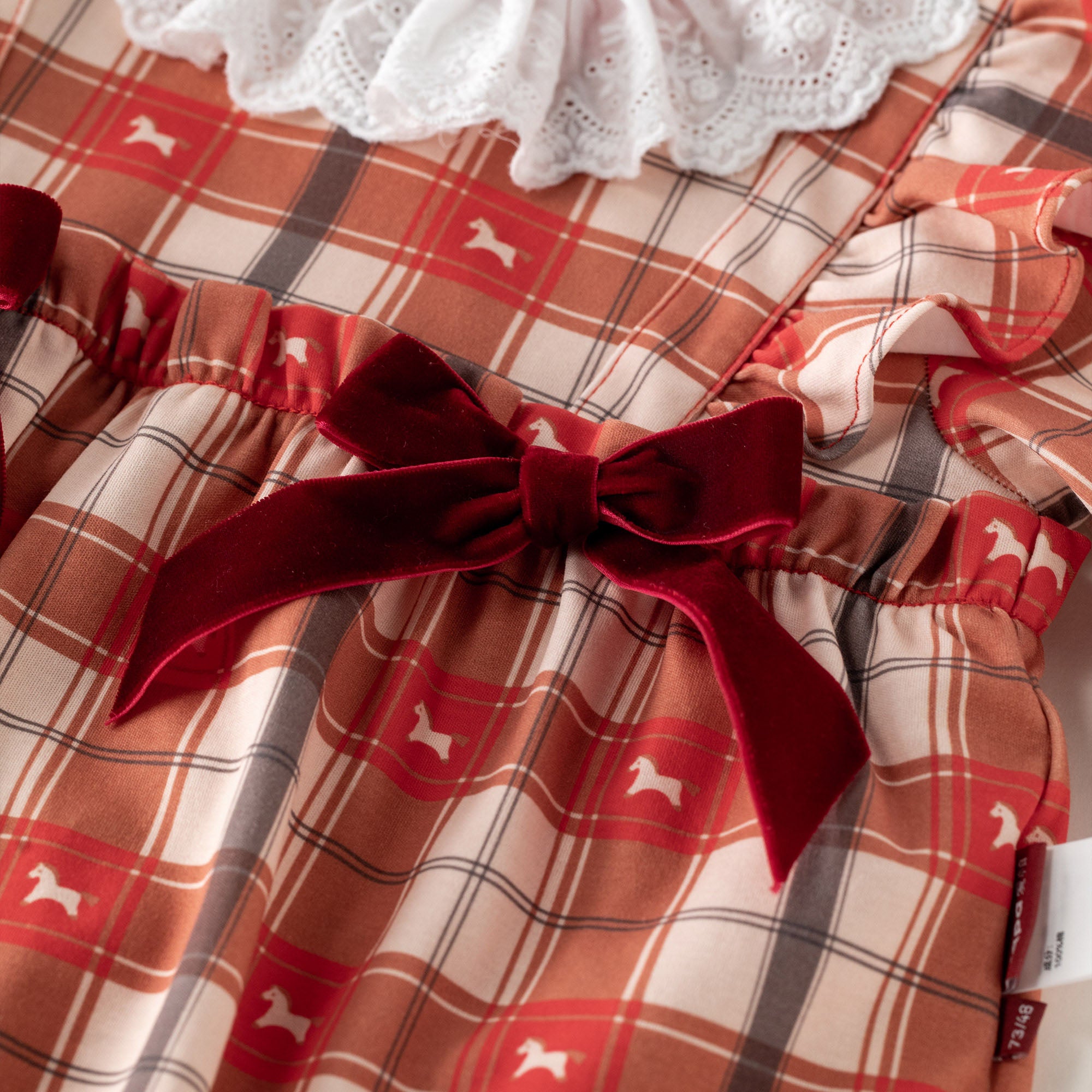 Organic Cotton Plaid Baby Romper | Soft One-Piece with Festive Scandinavian Print