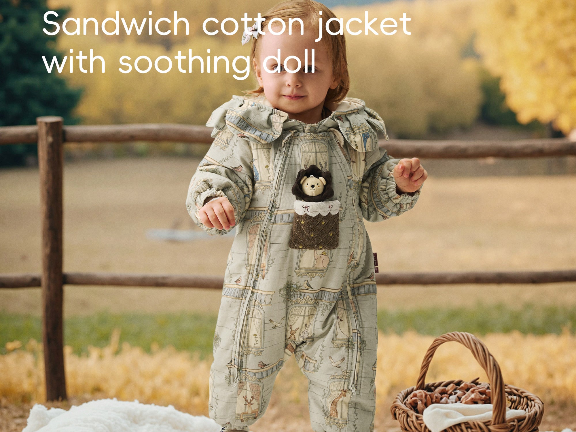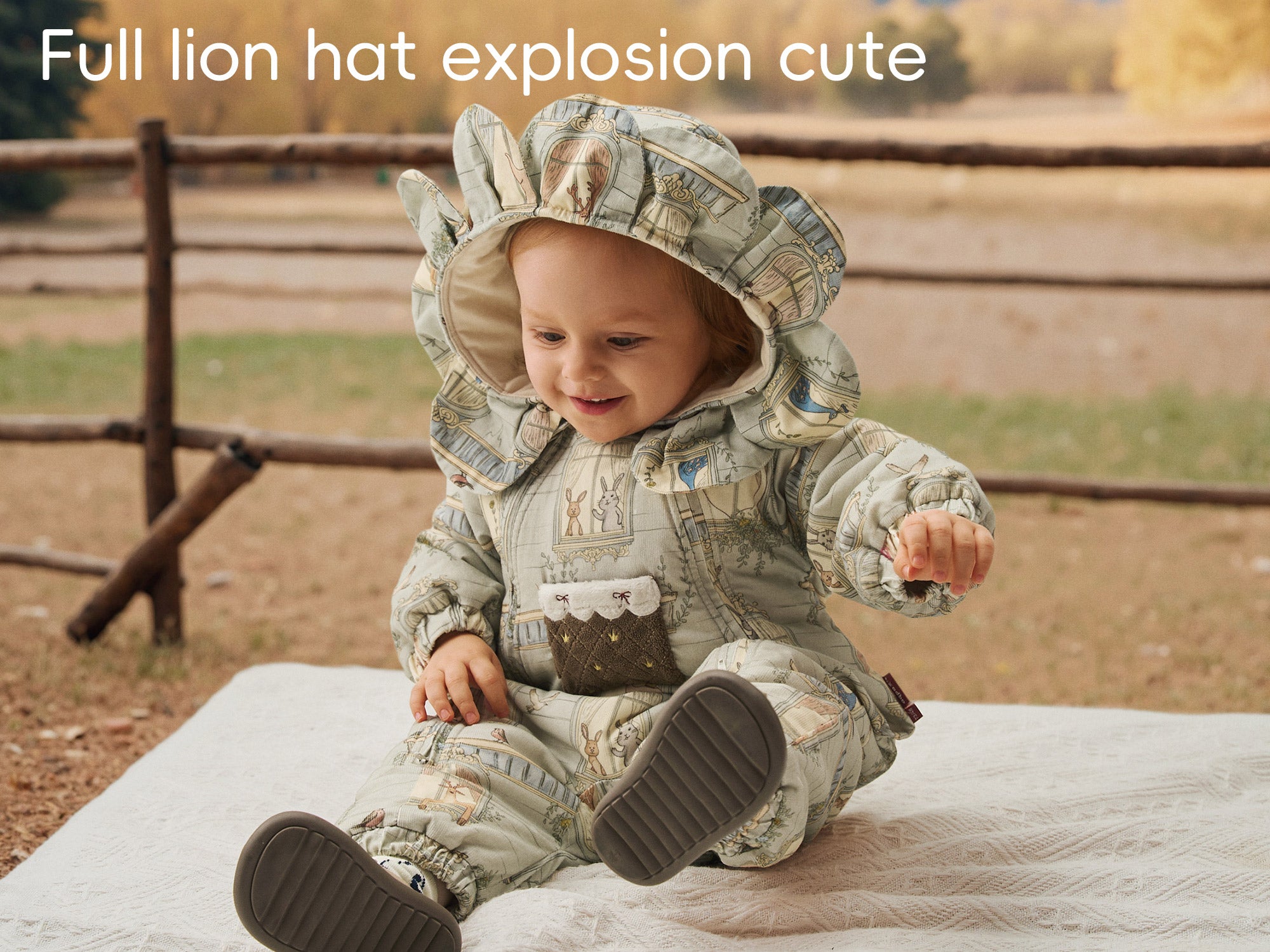 Padded Cotton Fabric + Lion Hood Design + Interactive Baby Snowsuit