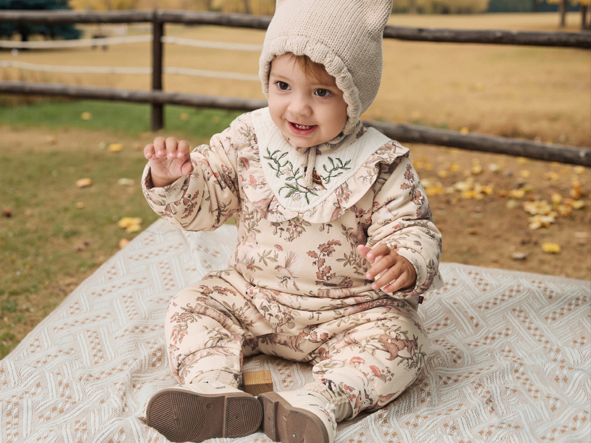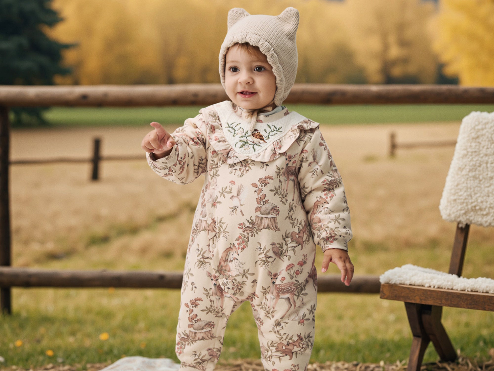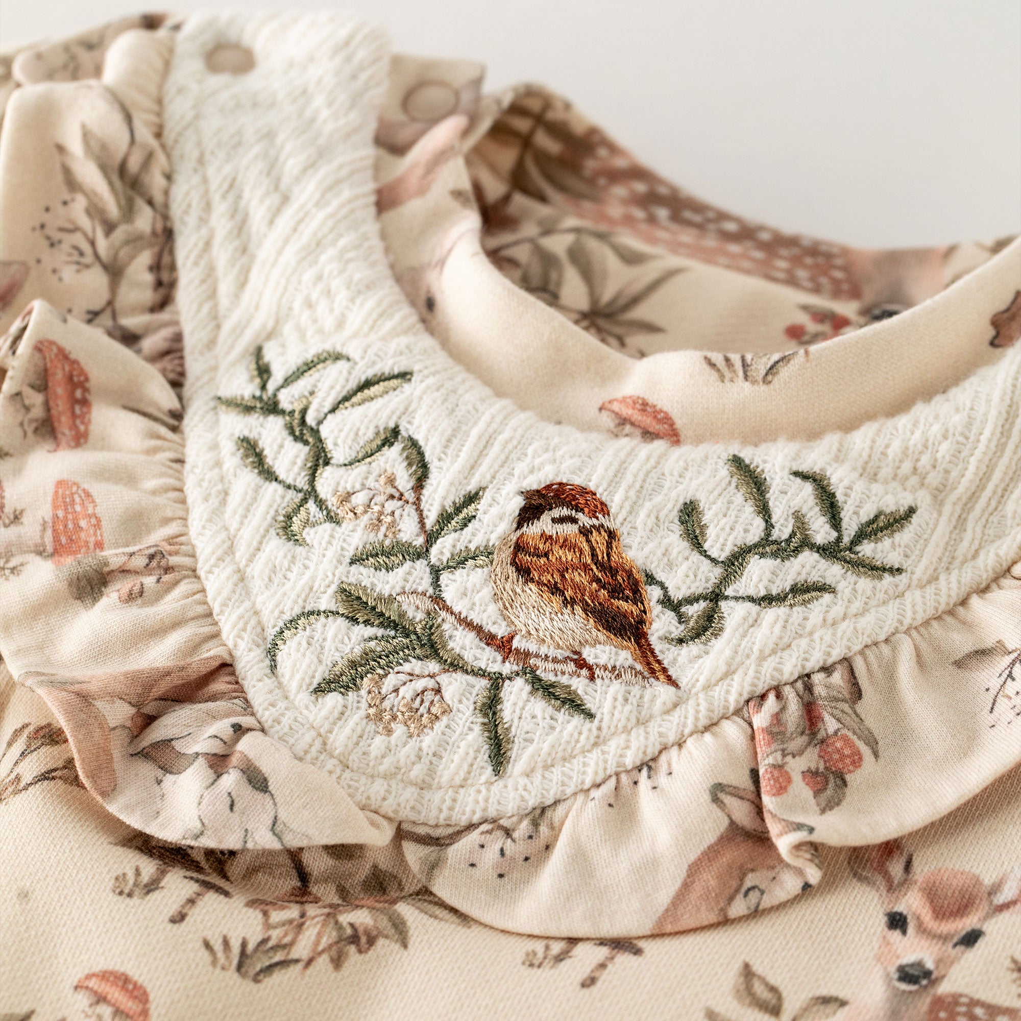 Floral Garden Cotton Baby Romper with Embroidered Collar | Cozy Padded One-Piece (5°C–15°C)