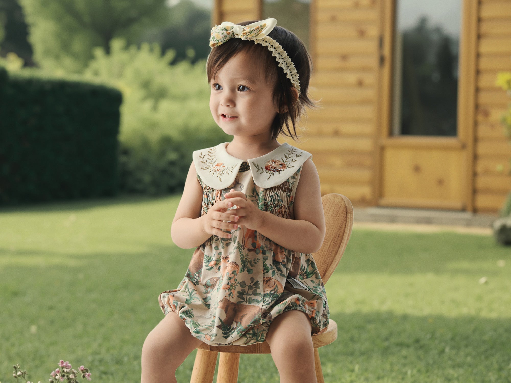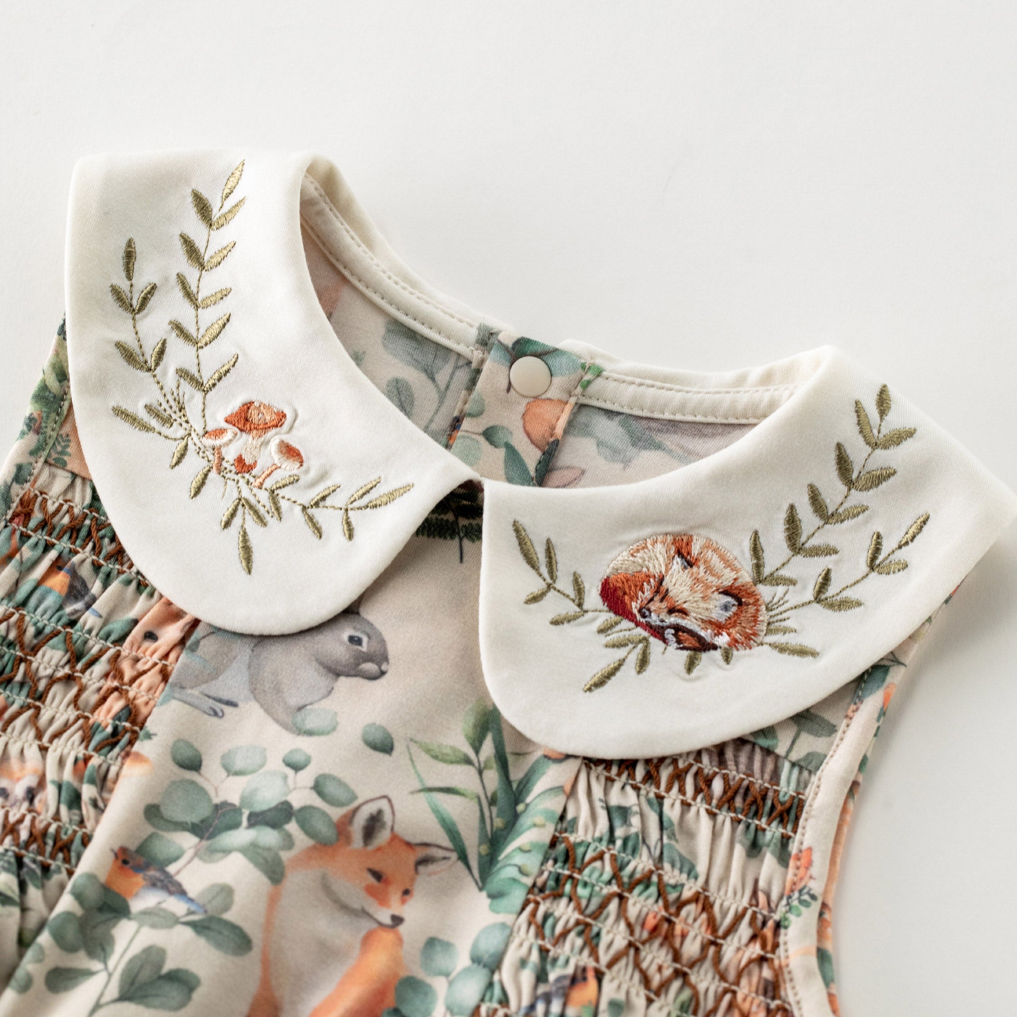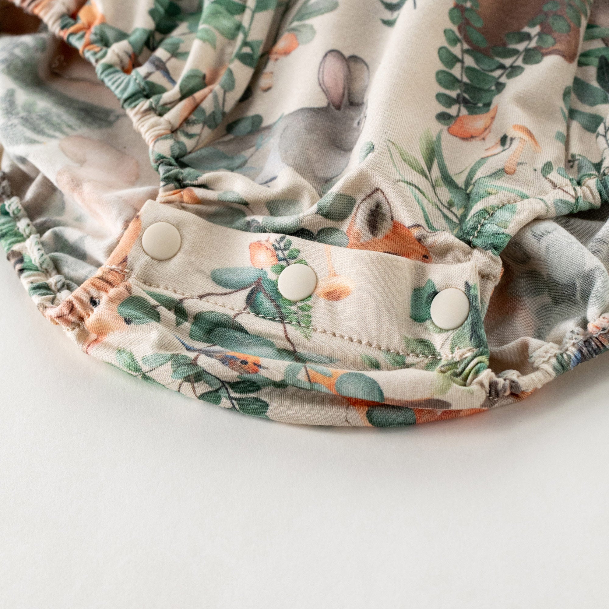 🍃 Forest Friends Smocked Romper | Soft Modal Magic