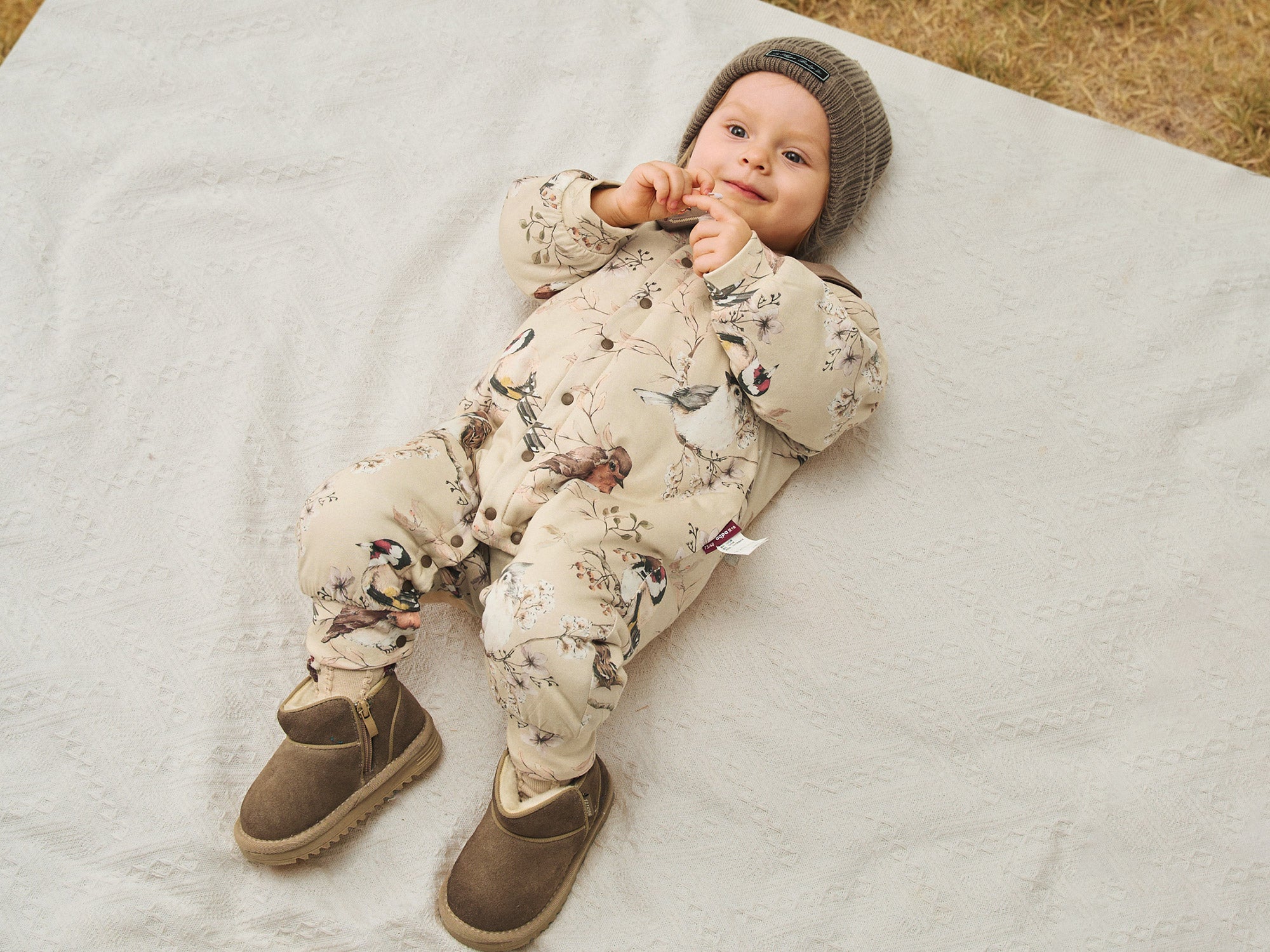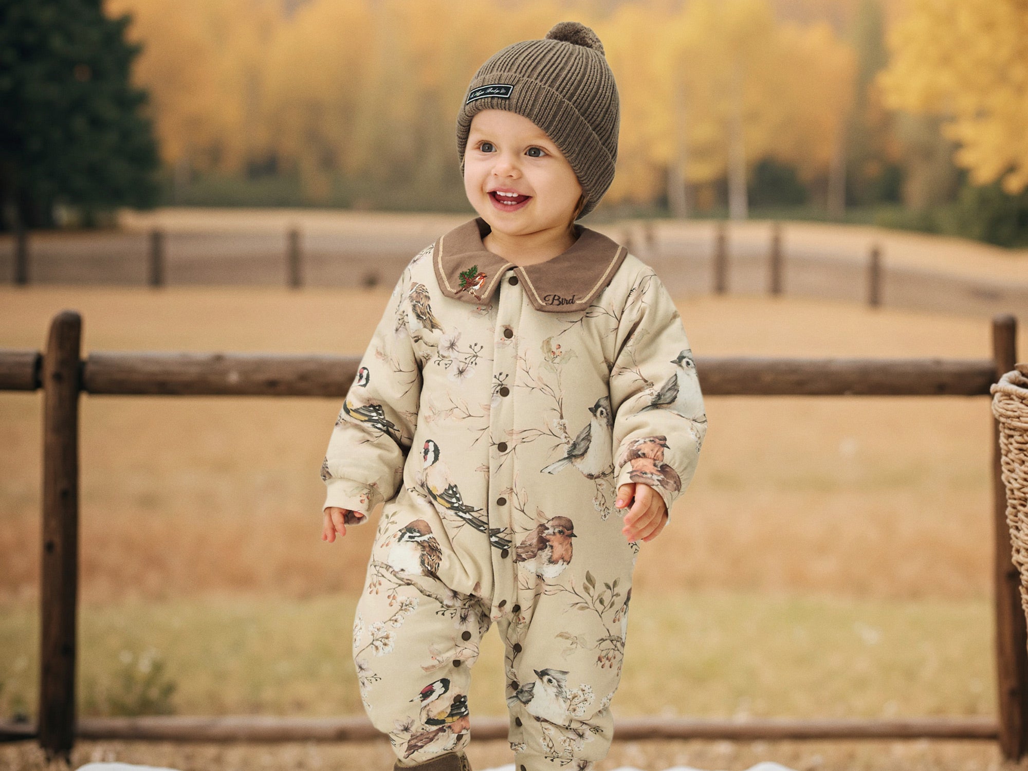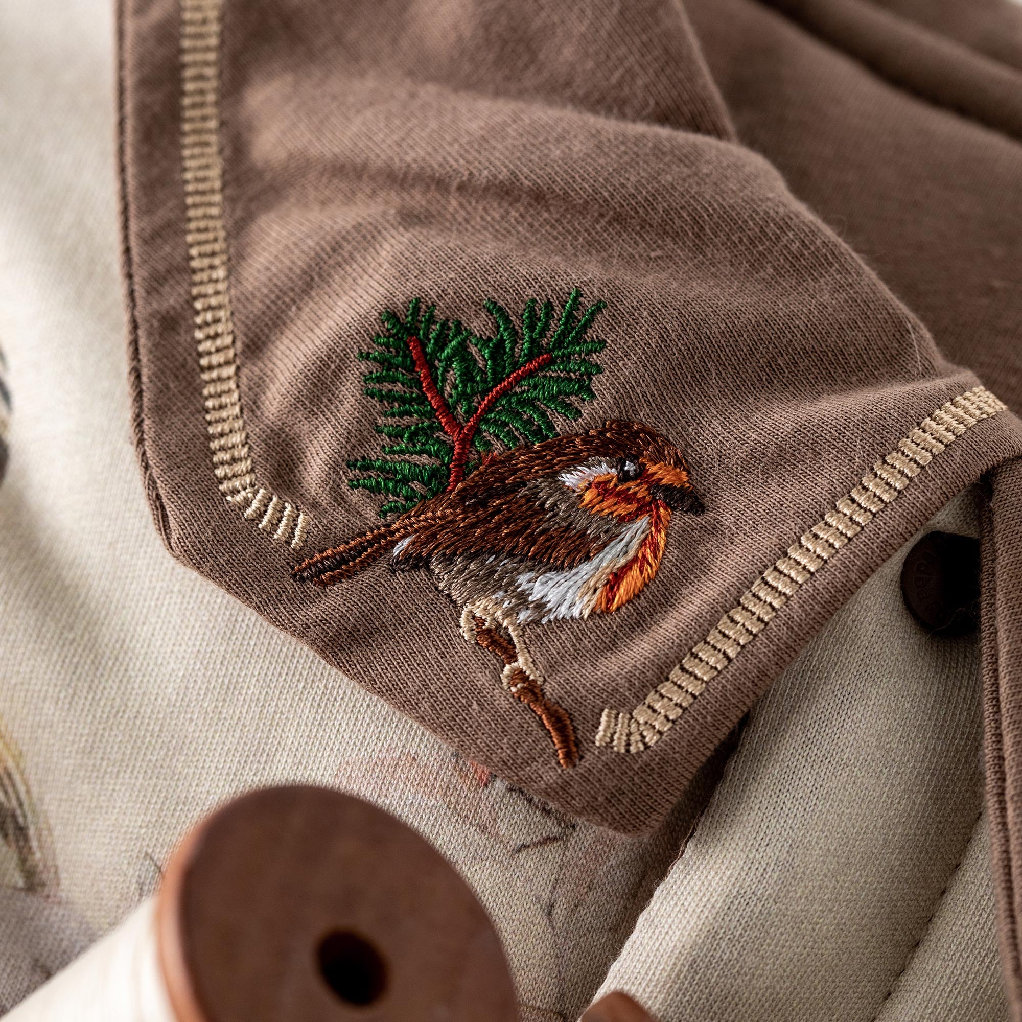 Sandwich-Layer Cotton + Bird Embroidery Collar + Baby Winter Romper