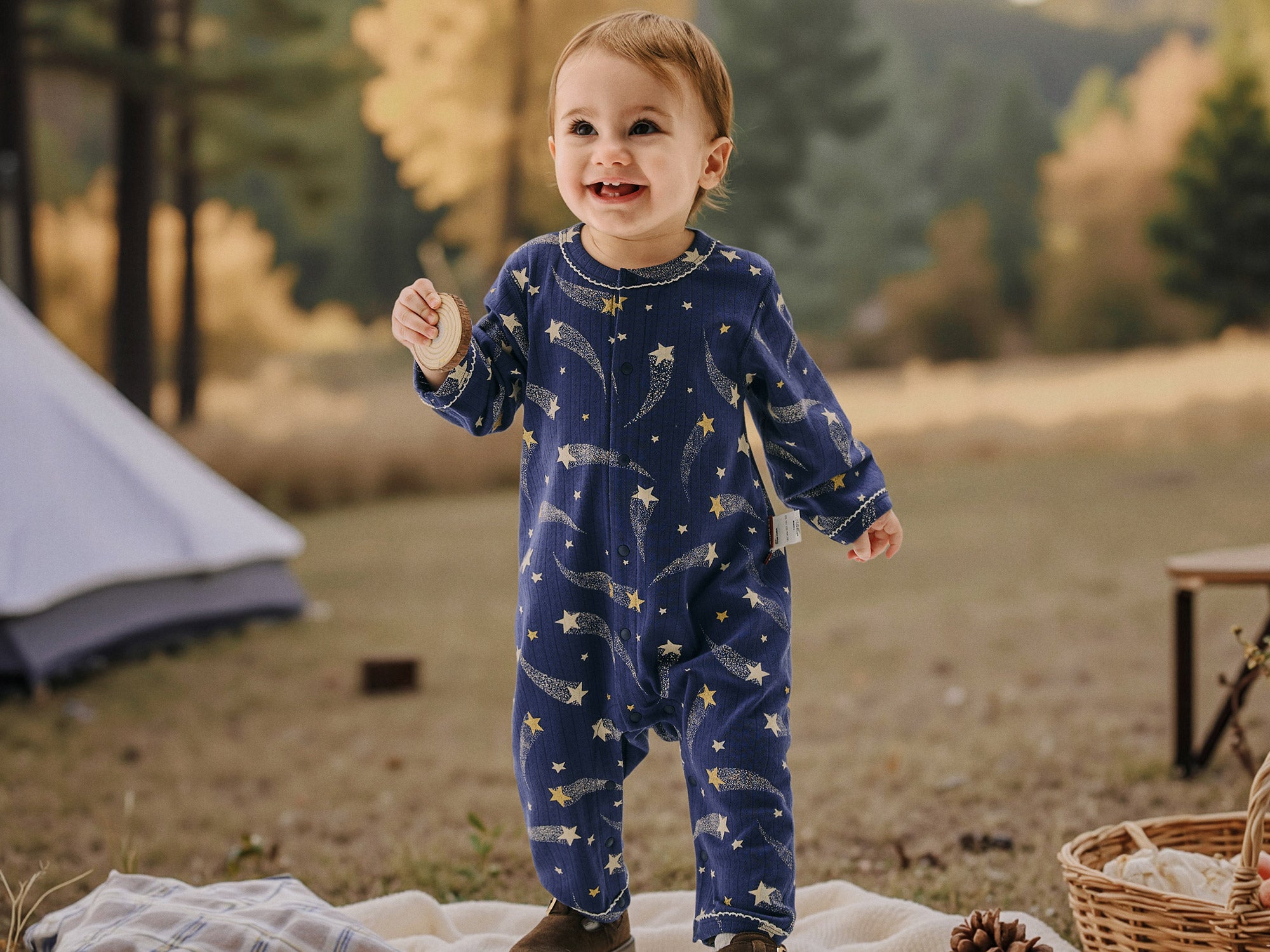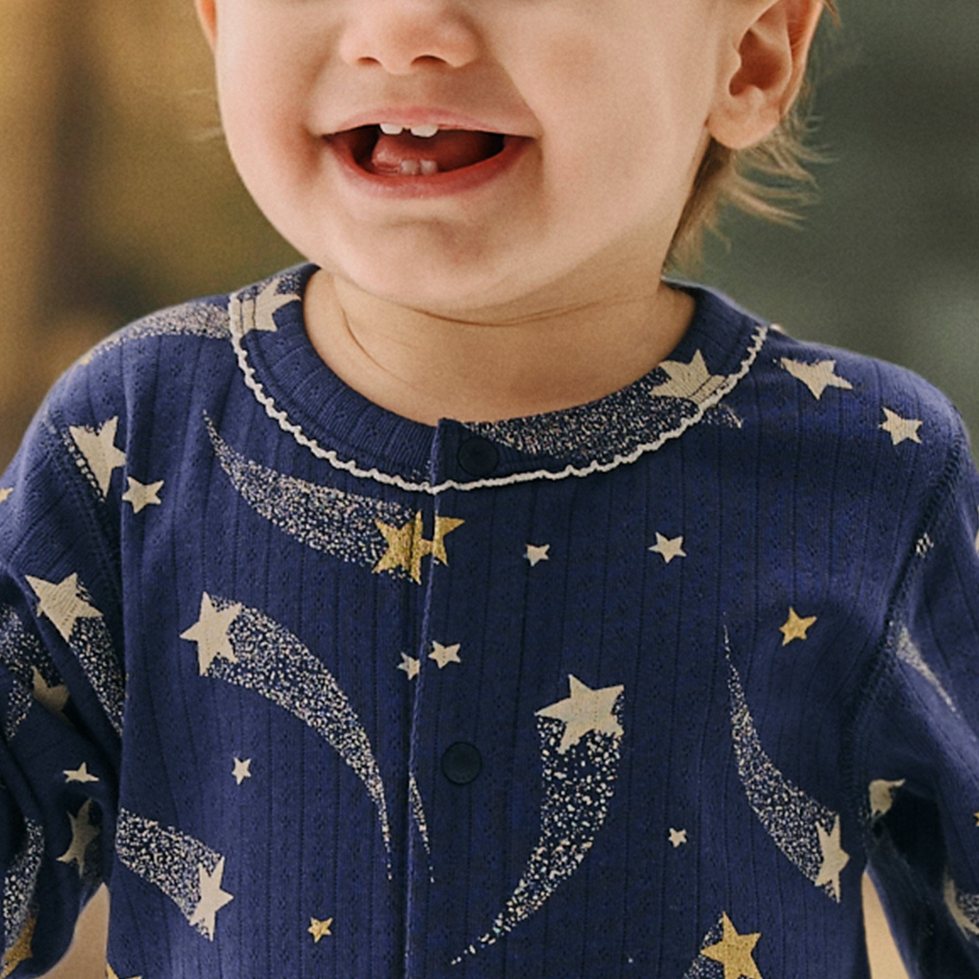 Starry Night – Cotton Baby Romper with Shooting Star Print