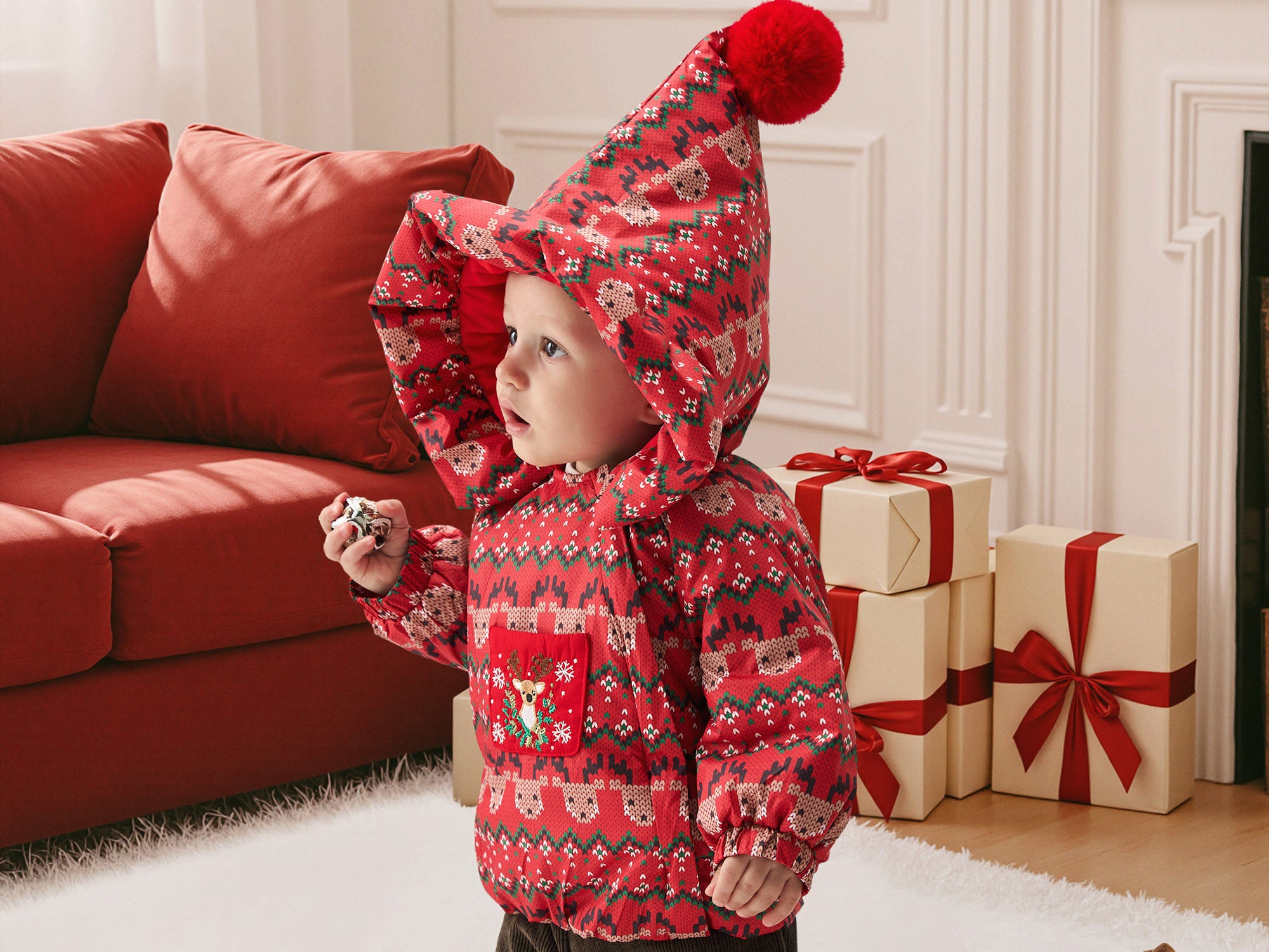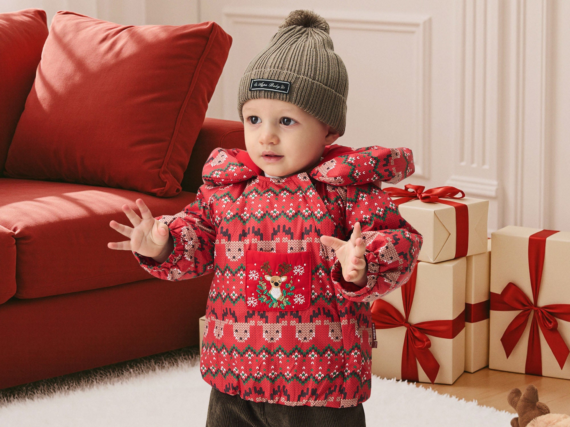 Waterproof Baby Ski Jacket with Reindeer Embroidery | Warm & Windproof Winter Coat (5°C–15°C)