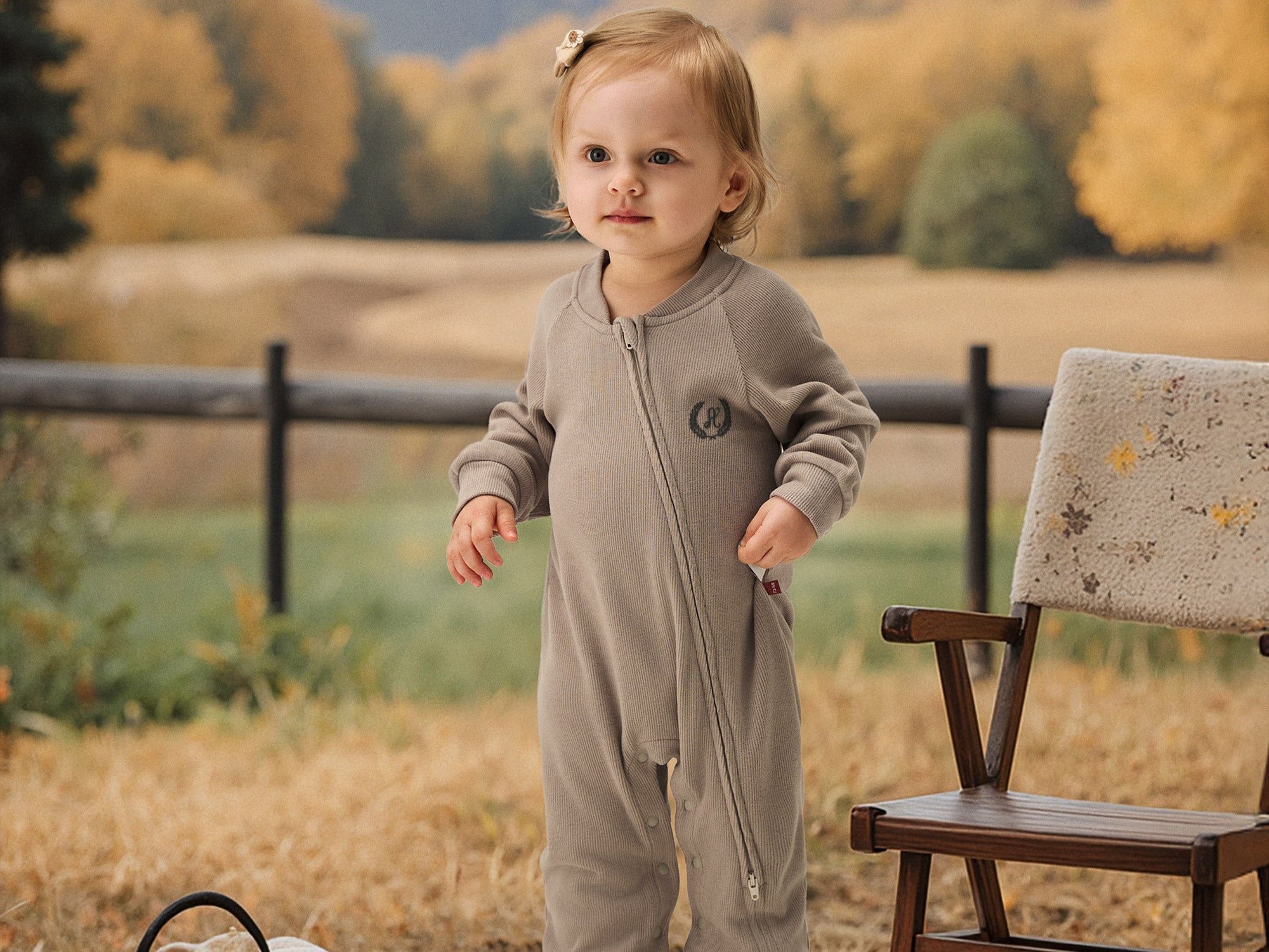 Wool-Blend Warmth | Cozy Fleece-Lined | YKK Zipper | Grey Baby Romper